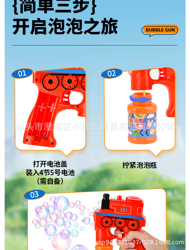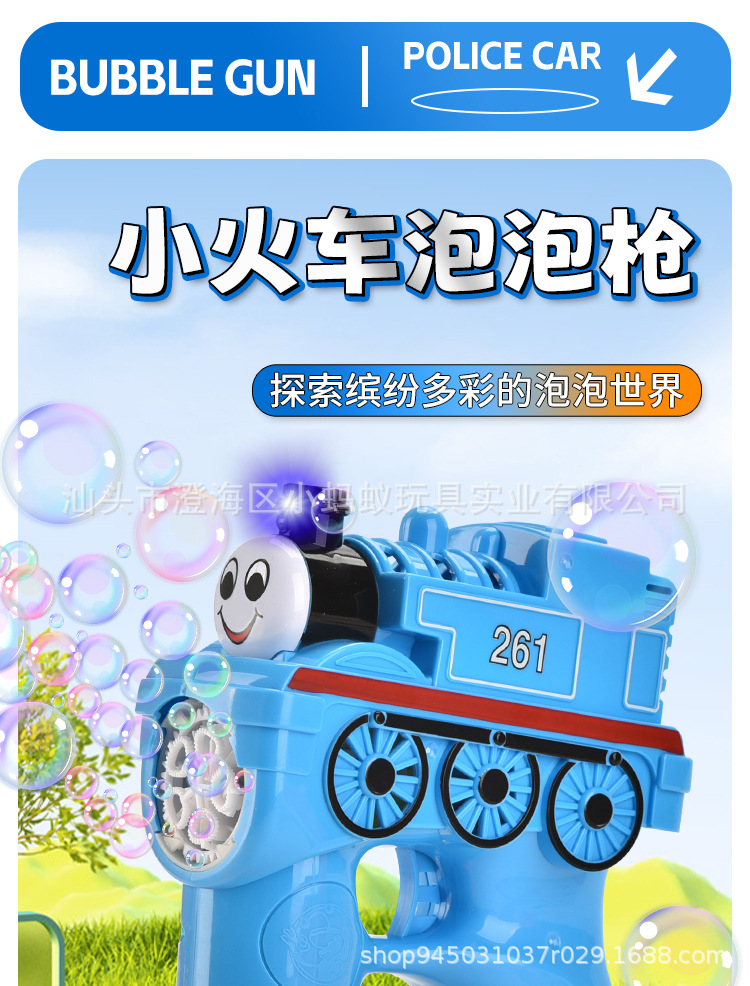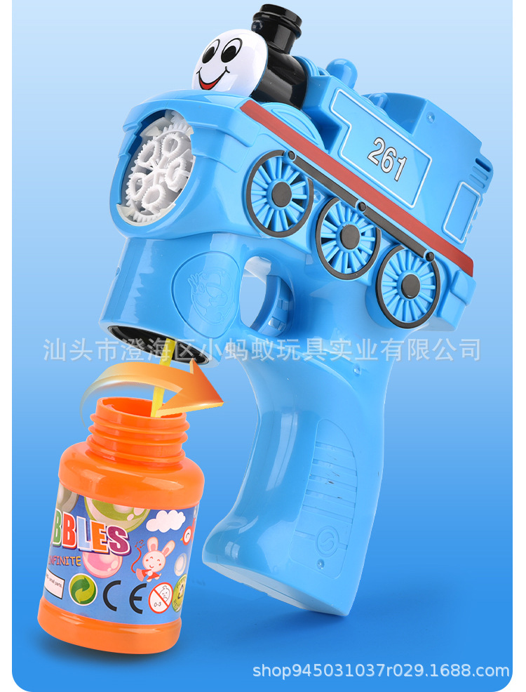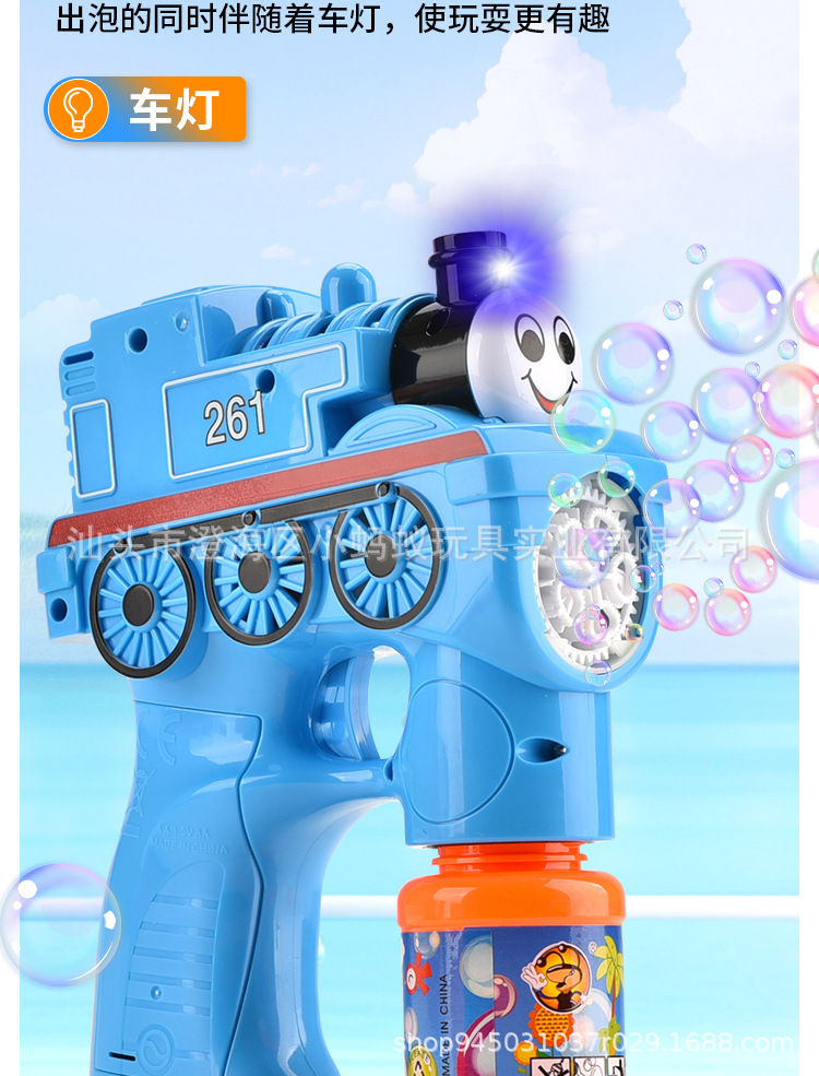 조명과 거품 부는 카드 플레이트 장난감을 갖춘 국경 간 도매 전기 기차 버블 건스토어 가기