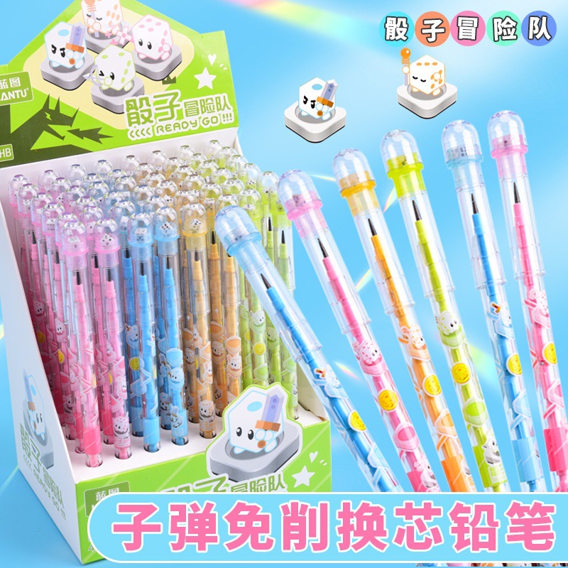 어린이 주사위 연필 학생 연필 불릿 헤드 접합 자동 연필 교체 가능한 코어 다기능 계란 낳는 펜스토어 가기
