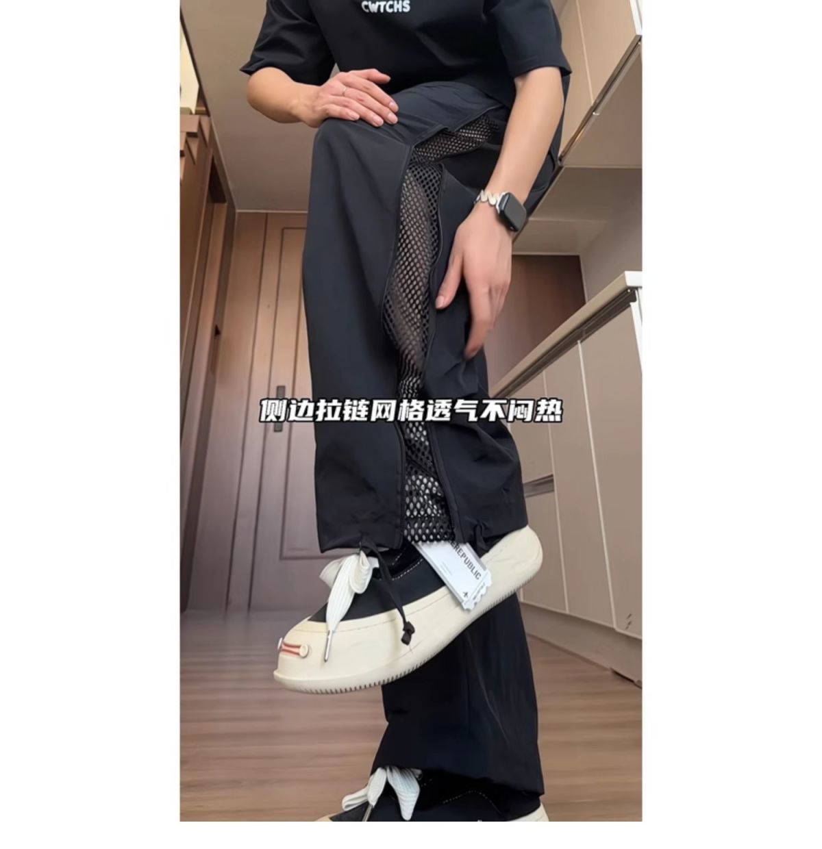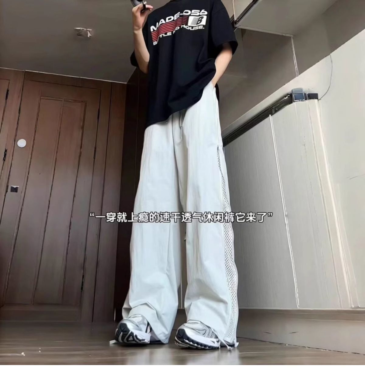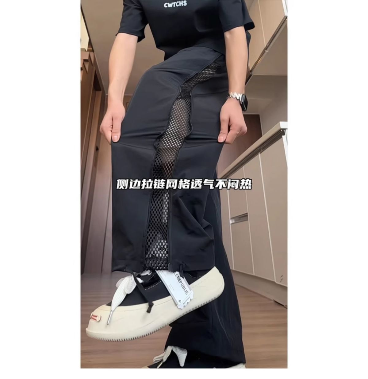 가을 남성용 아메리칸 아웃도어 메쉬 통기성 속건성 충전 바지 루즈한 등산 파라트로퍼 작업복 스트레이트 와이드 팬츠스토어 가기