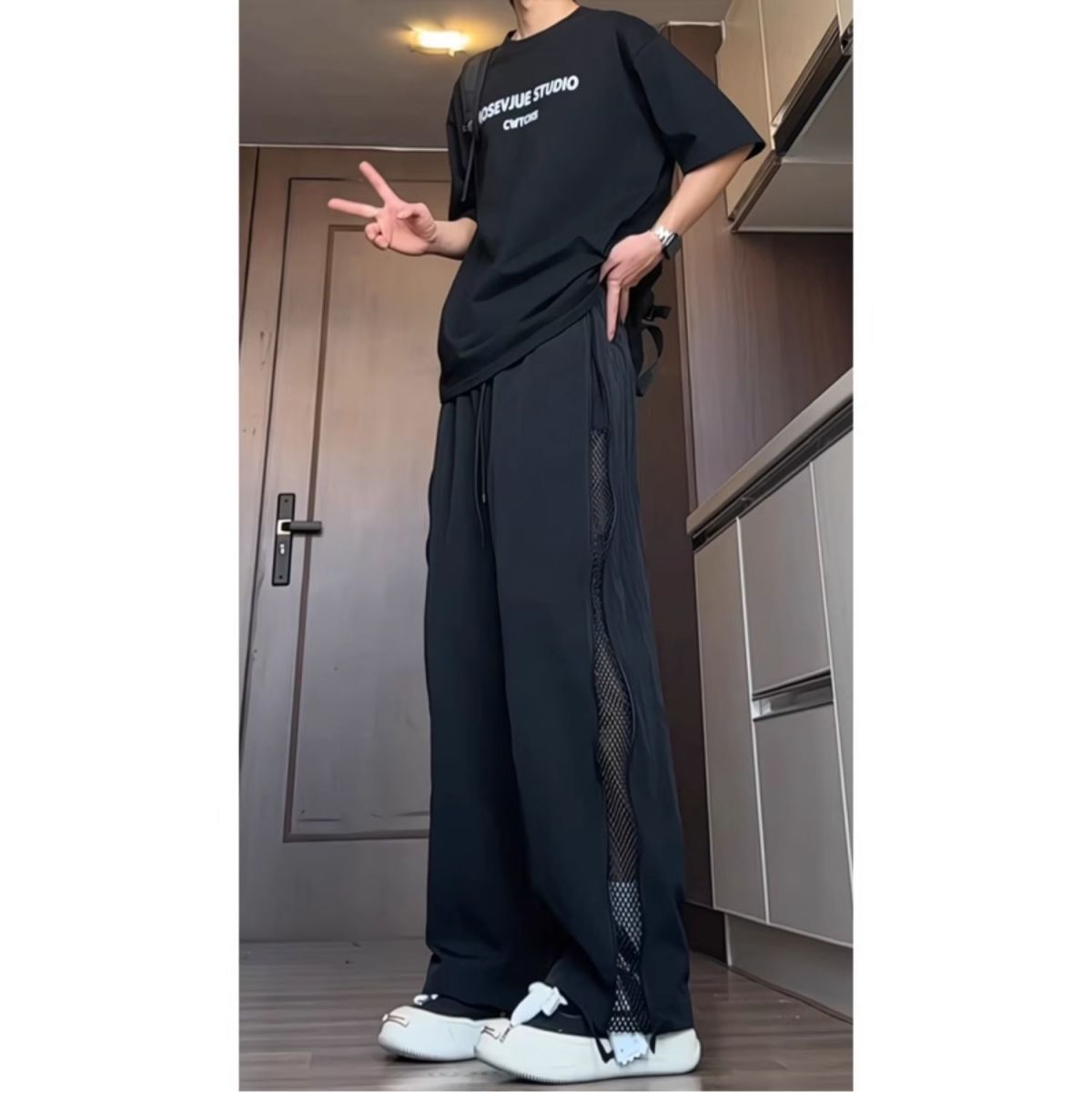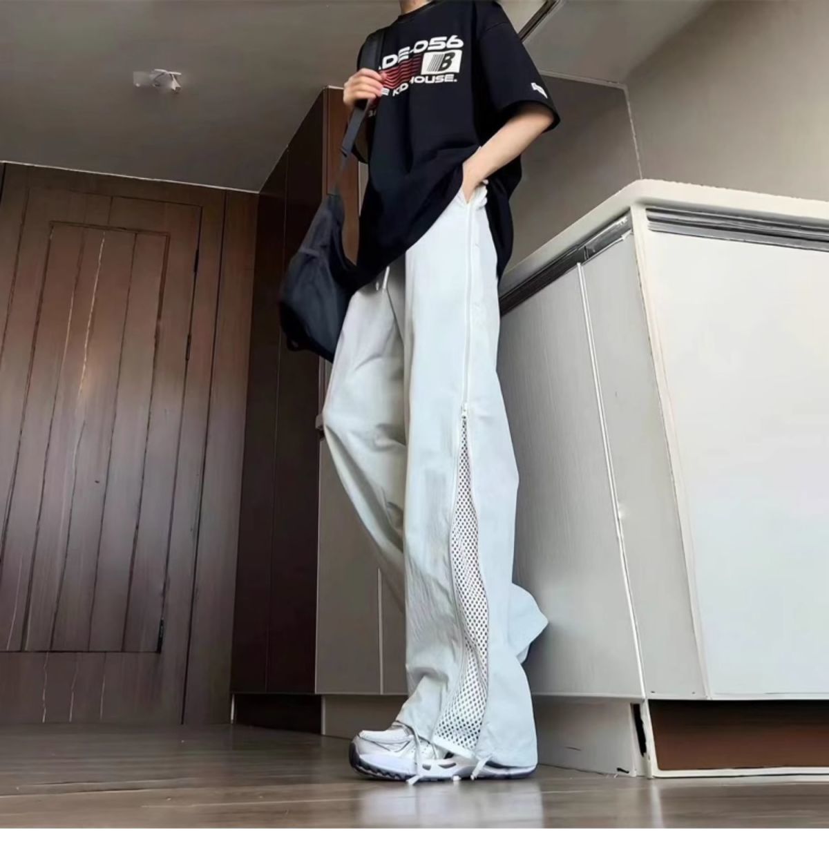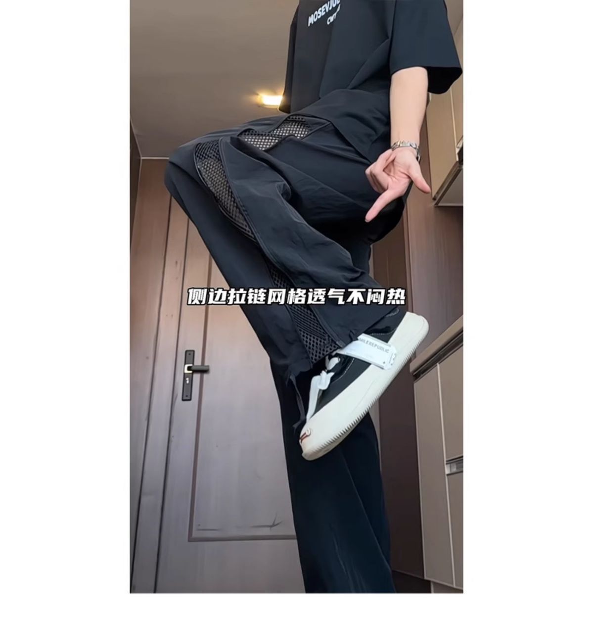 가을 남성용 아메리칸 아웃도어 메쉬 통기성 속건성 충전 바지 루즈한 등산 파라트로퍼 작업복 스트레이트 와이드 팬츠스토어 가기