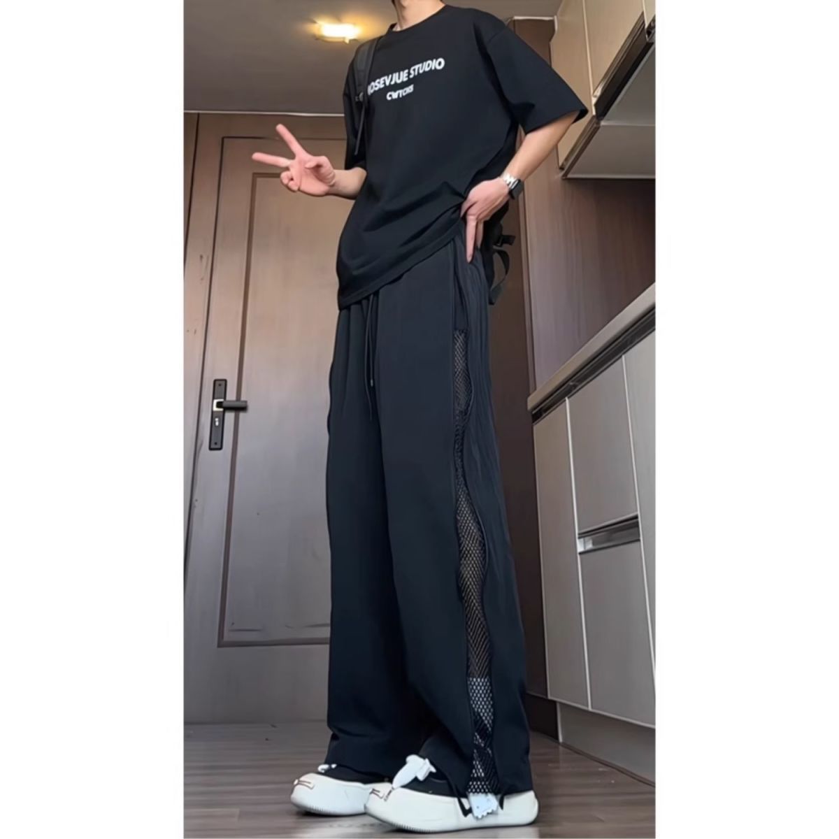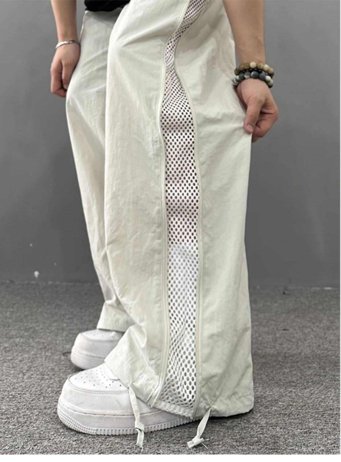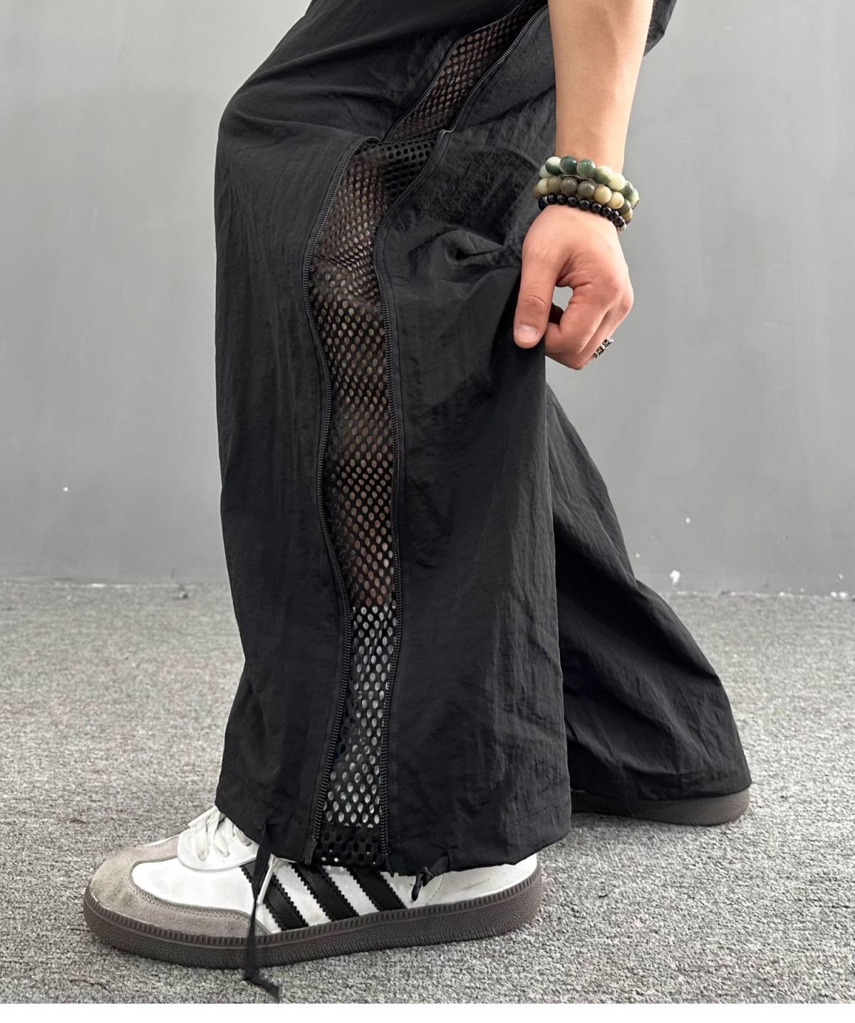 가을 남성용 아메리칸 아웃도어 메쉬 통기성 속건성 충전 바지 루즈한 등산 파라트로퍼 작업복 스트레이트 와이드 팬츠