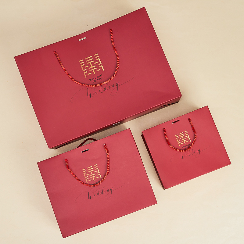 중국 스타일 빨간색 더블 해피 선물 가방 결혼 선물 가방 웨딩 사탕 가방 기념품 핸드백 포장 가방 반환 선물 가방