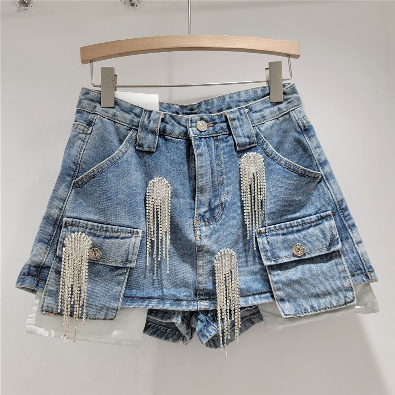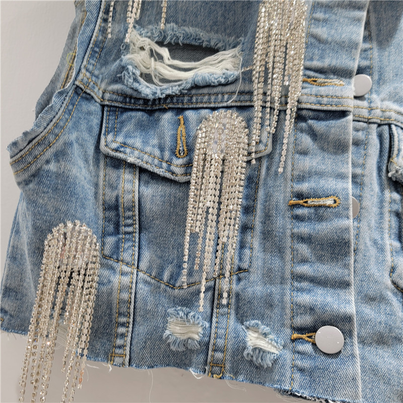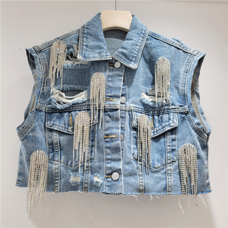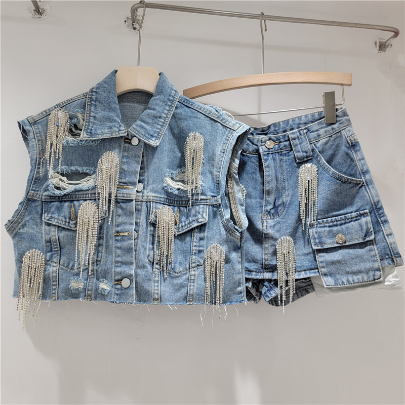 헤비 드레스 라인스톤 데님 조끼 + A라인 스커트 여성 2025 여름 신작 루즈하고 패셔너블한 슈트스토어 가기