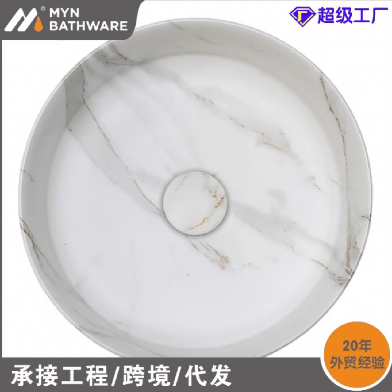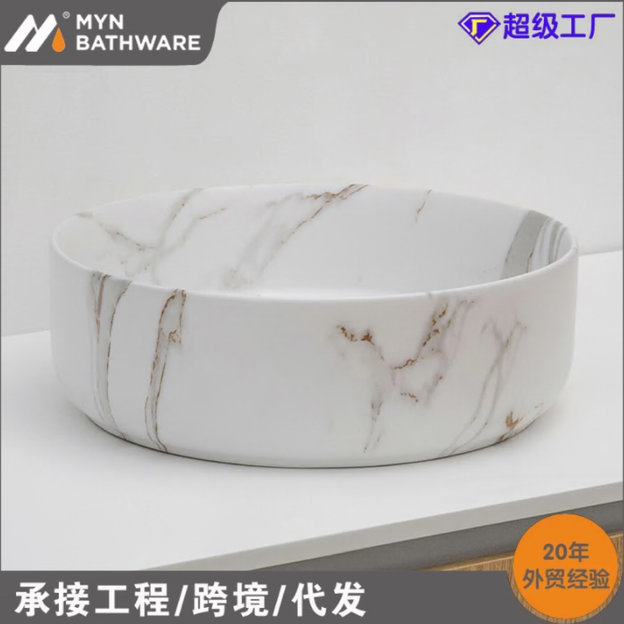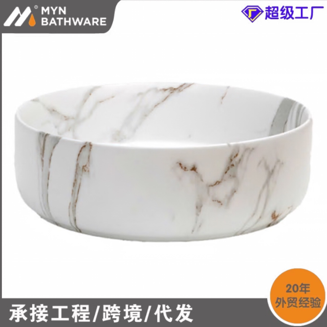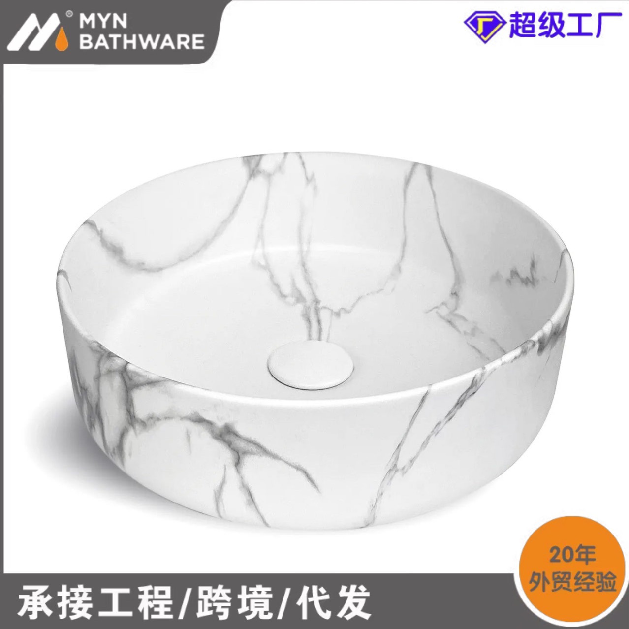 수출용 물 전사 인쇄 세면대 세라믹 세면대 소형 대리석 무광택 세면대