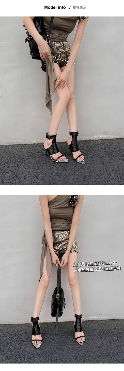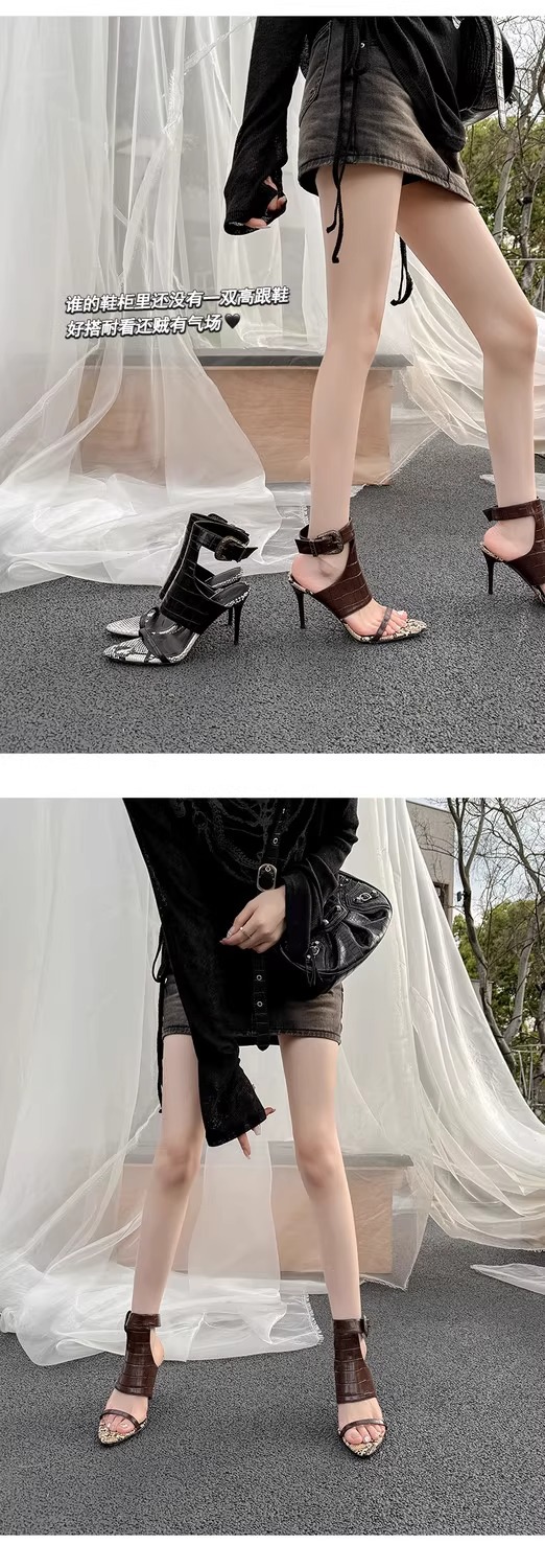 유럽과 미국의 검은 기질 하이힐, 섹시한 여신 스타일 스커트, 패션 슈즈, 천연 가죽 뾰족한 굽 오픈 토 샌들스토어 가기