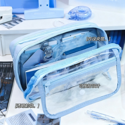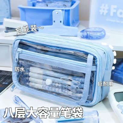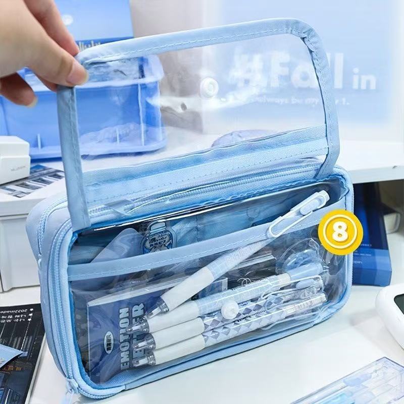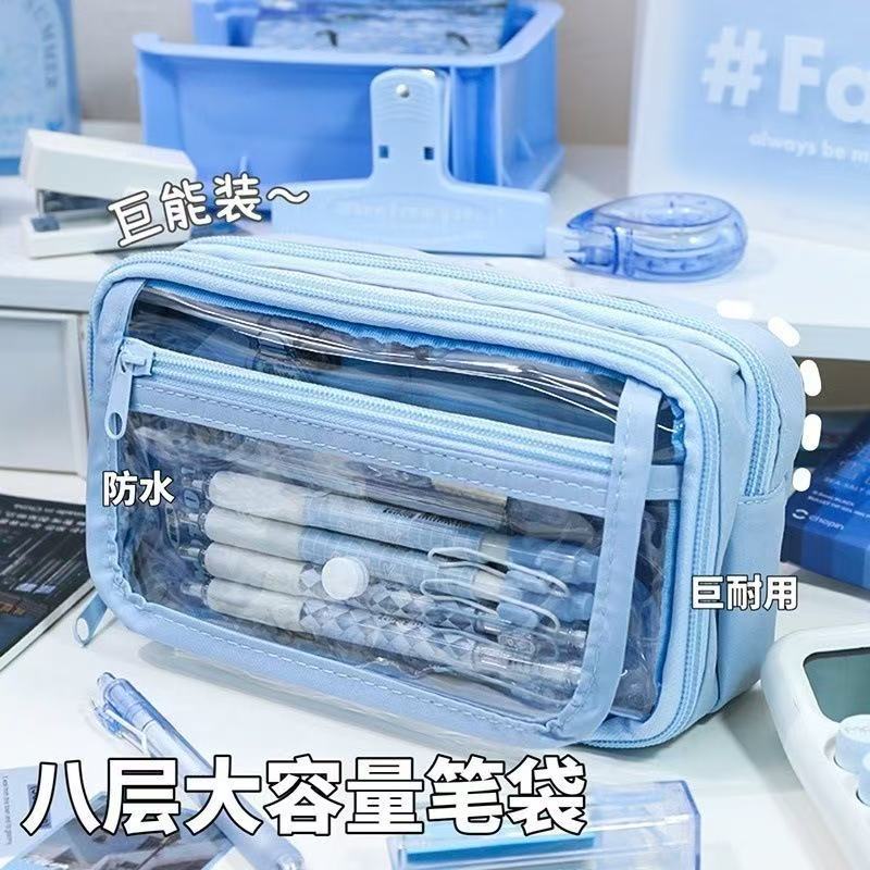 8단 투명 필통, 인스타 감성, 고급스러운 디자인, 대용량 문구함, 초등학생 남학생용, 심플한 다층 필통