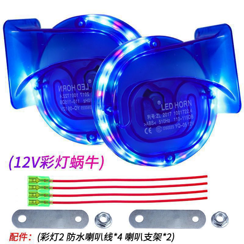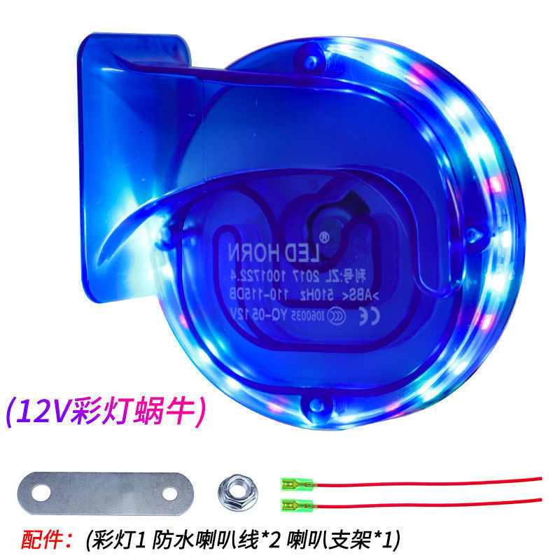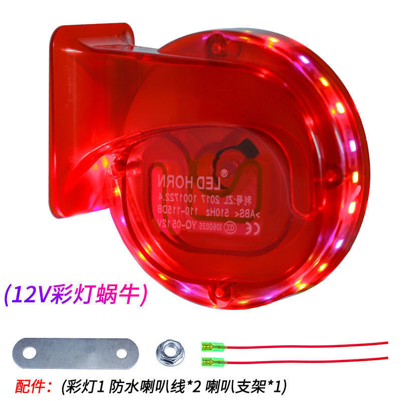 다채로운 조명 경적 오토바이 슈퍼 시끄러운 경적 전기 자동차 시세 큰 달팽이 경적 휘파람 무료 배송