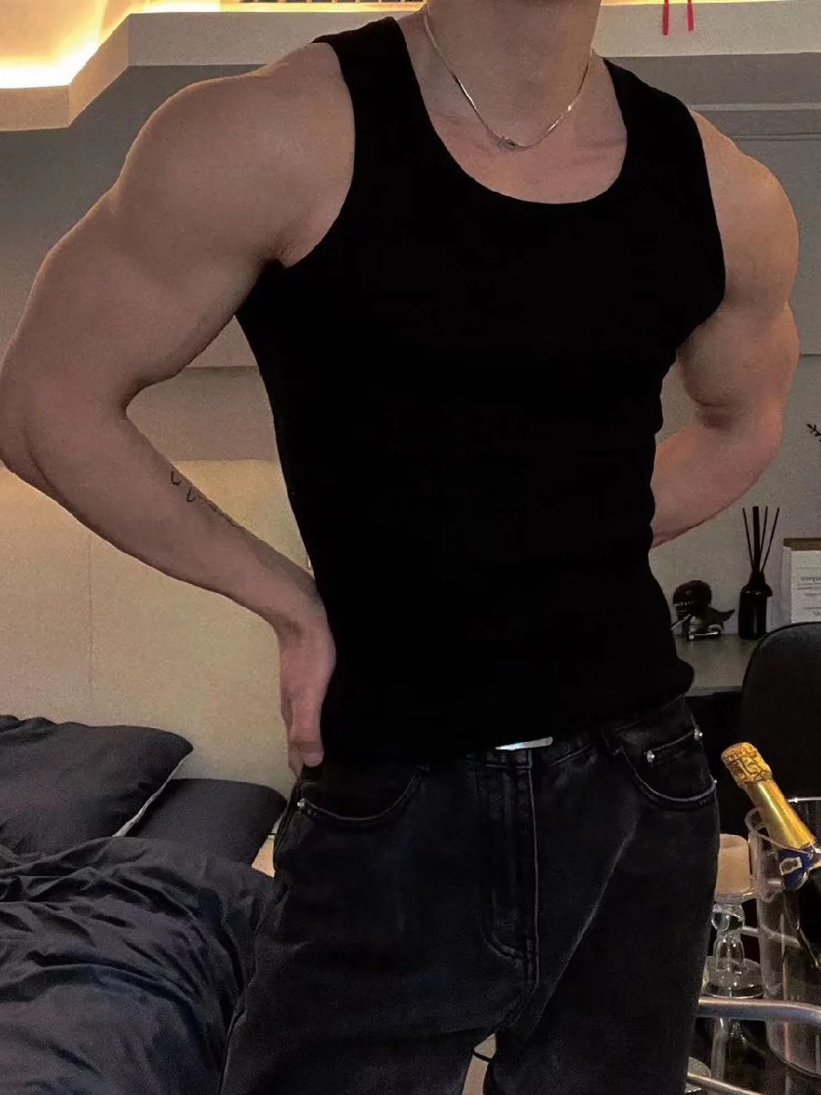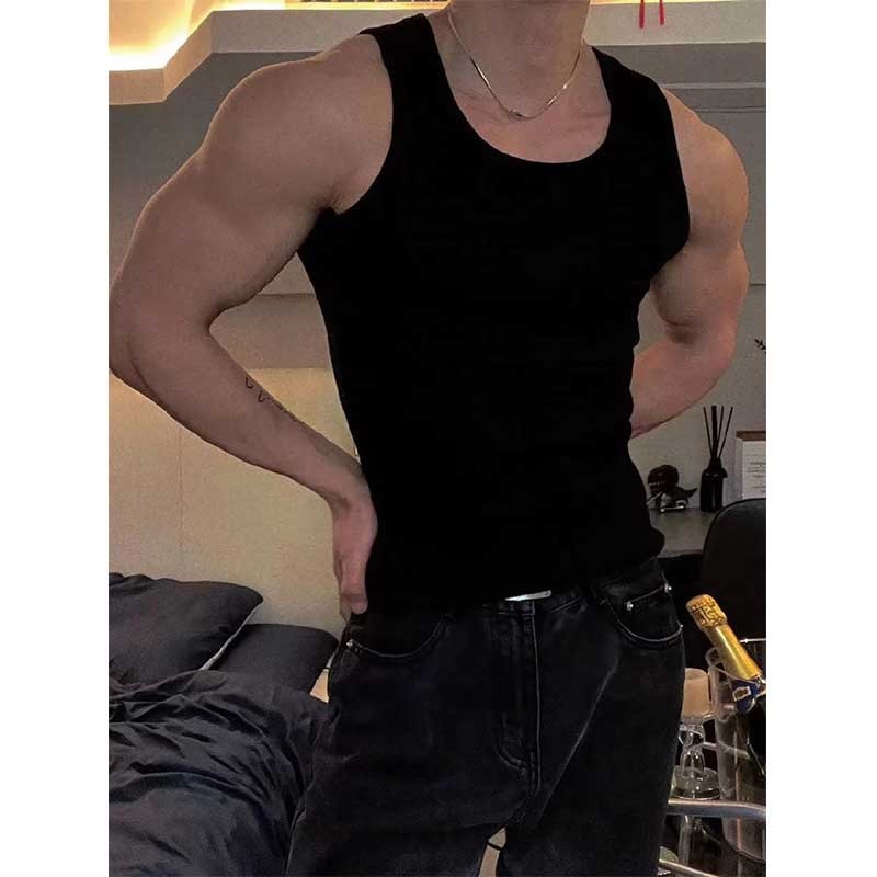 피트니스 탄성 땀 흡수 근육 노출 남성용 여름 조끼 세로 줄무늬 스트리트 슬림핏 I자형 스포츠 탑스토어 가기