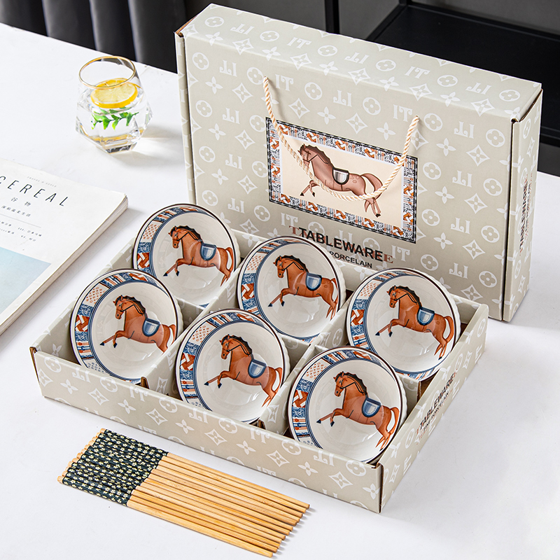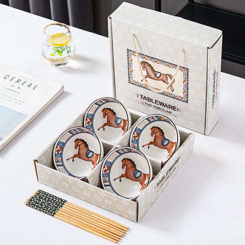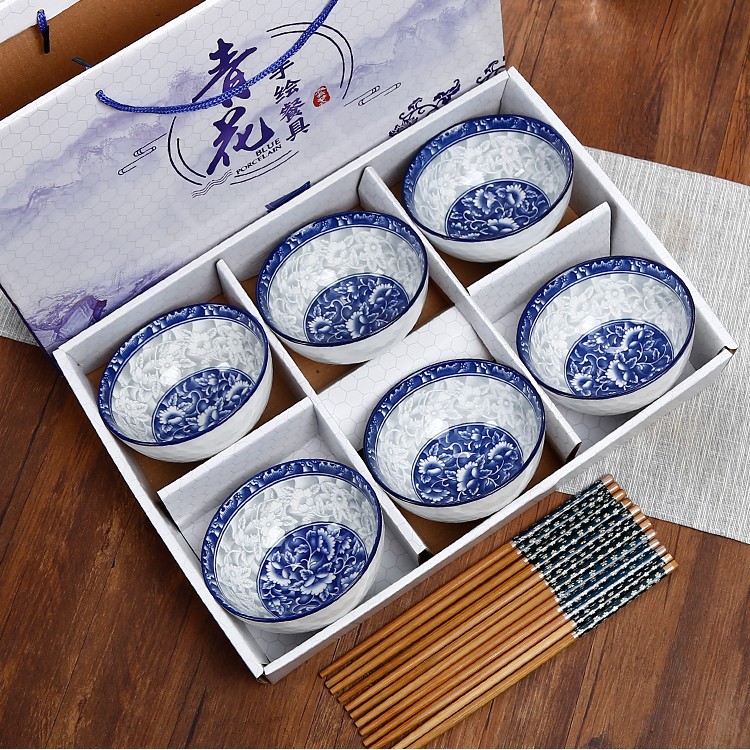 선물용 그릇과 젓가락 세트, 가정용 도자기 그릇 식기 세트, 그릇과 접시, 청화 도자기 그릇 선물 상자, 본차이나스토어 가기