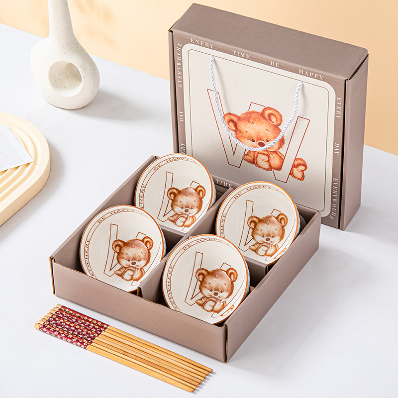 • 연한 갈색, 약간의 배려, 그릇 4개, 젓가락 4개