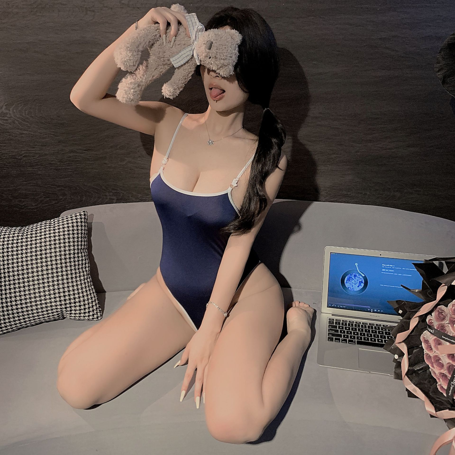 섹시 란제리 점프수트, 데스쿠 워터 유혹, 섹시한 얇고 투명한 백리스 크로스 서스펜더 바디수트, 수영복스토어 가기