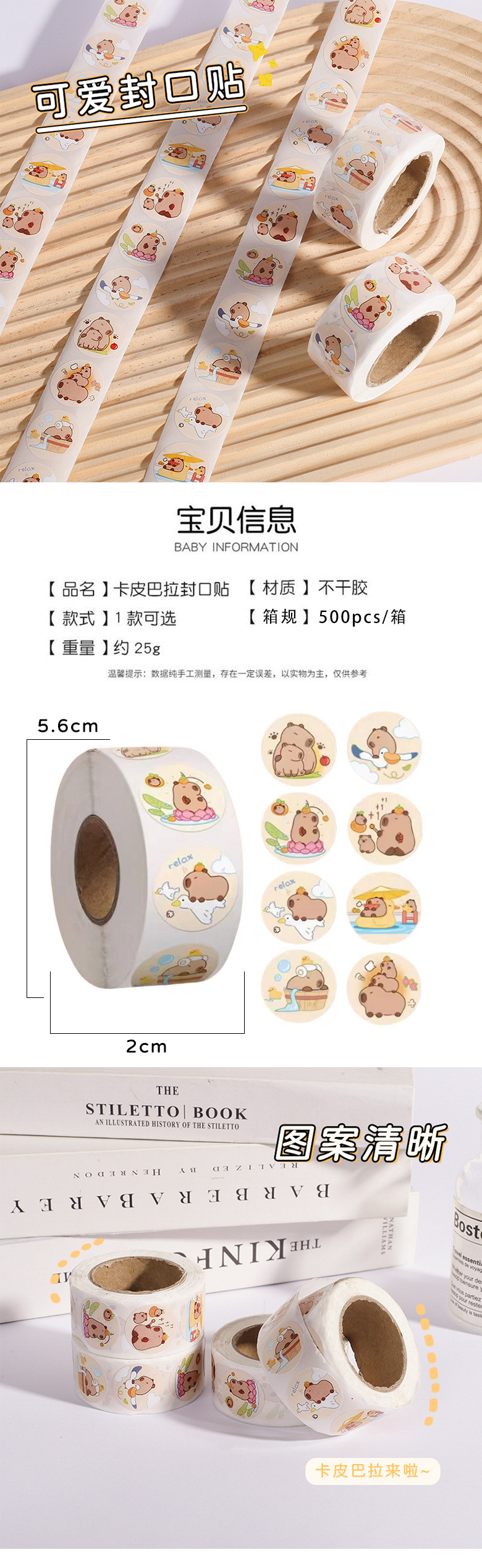 카피 바 롤 스티커 귀여운 만화 높은 색상 가치 손 계정 밀봉 스티커 장식 어린이 작은 상 선물스토어 가기