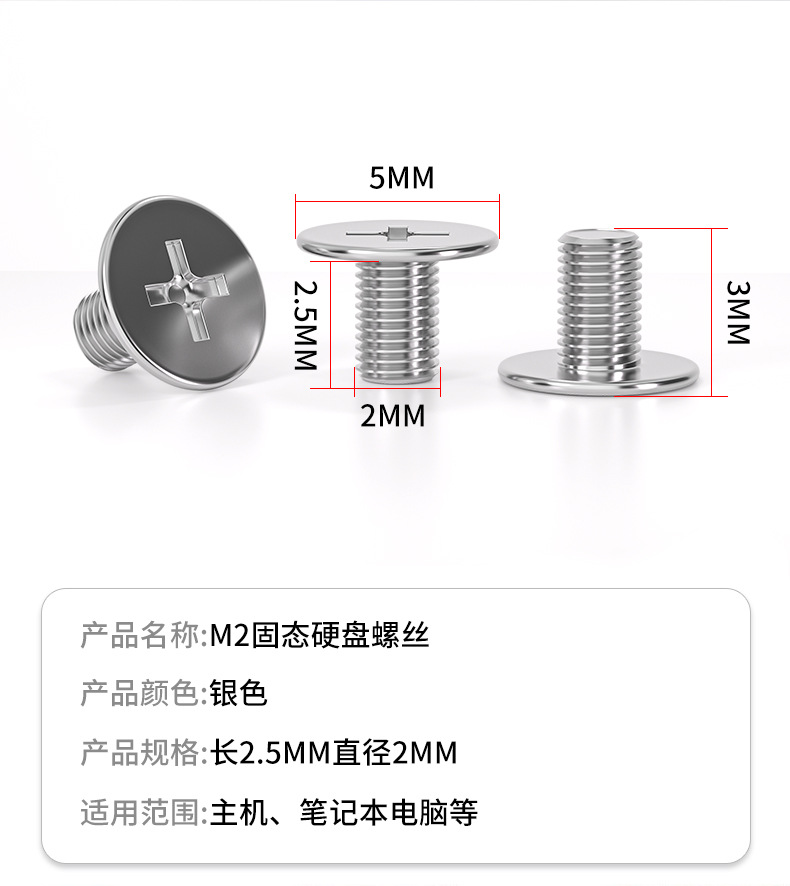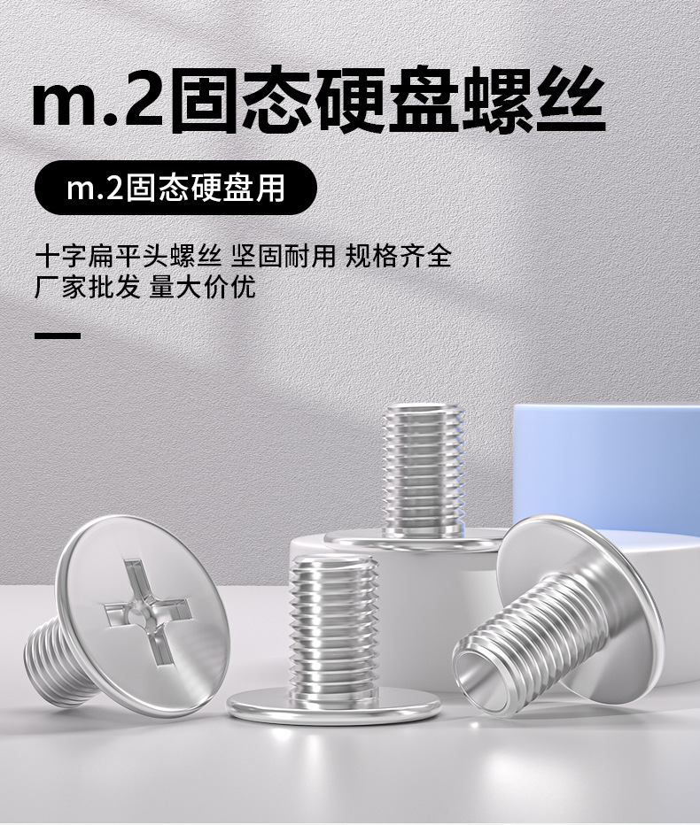 M2 솔리드 스테이트 드라이브 얇은 머리 나사 십자 나사 데스크탑 컴퓨터 범용 플랫 헤드 소형 m.2 나사 얇은 가장자리 1 개