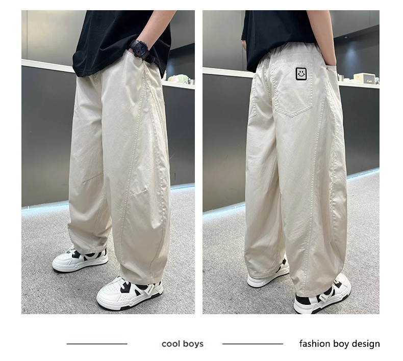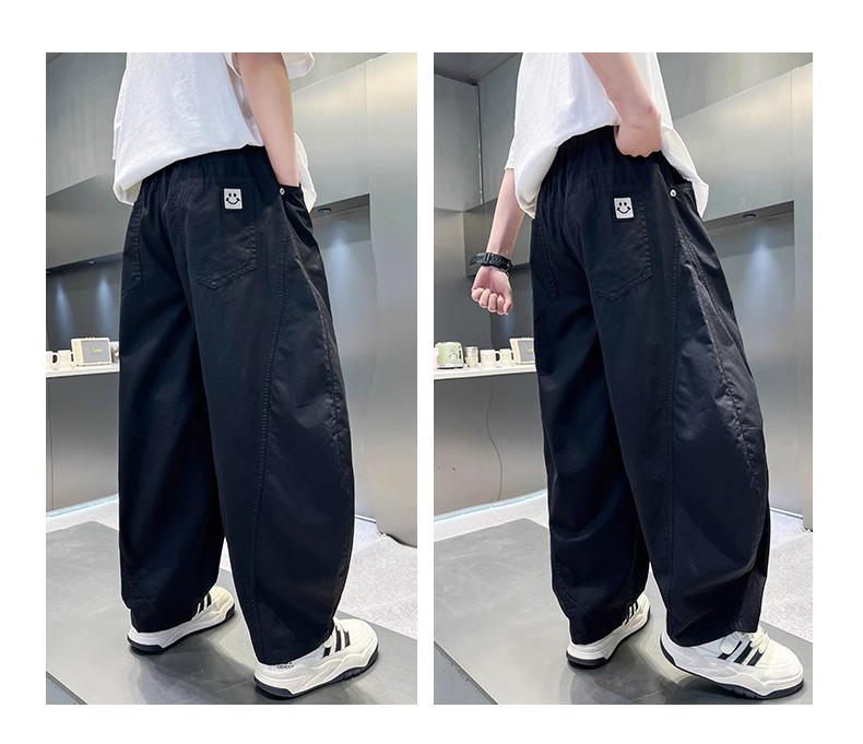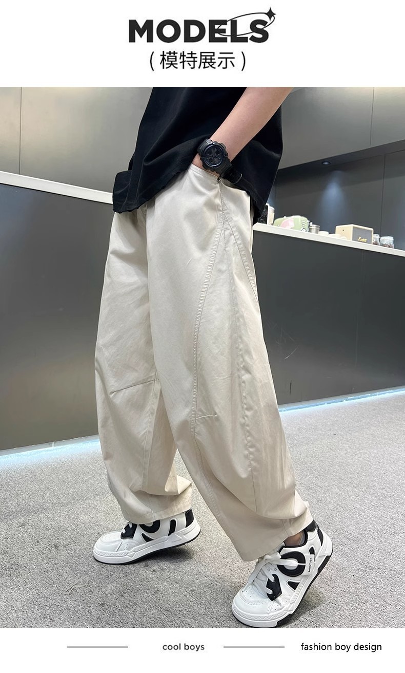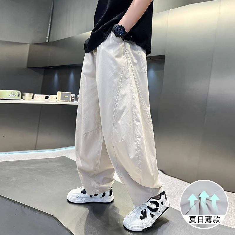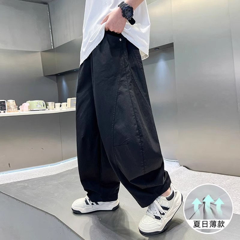폭발성 소년 여름 얇은 아이스 실크 바지 느슨한 직선 다리 바지 소년 캐주얼 와이드 다리 바지 어린이 올매치 스포츠 바지