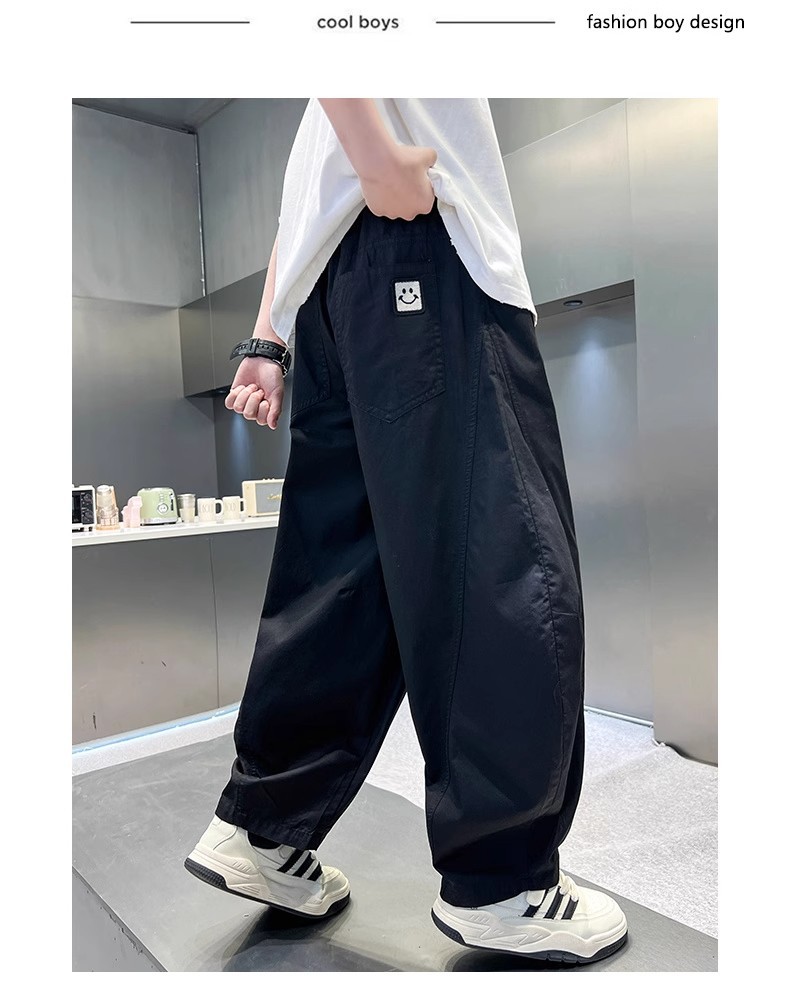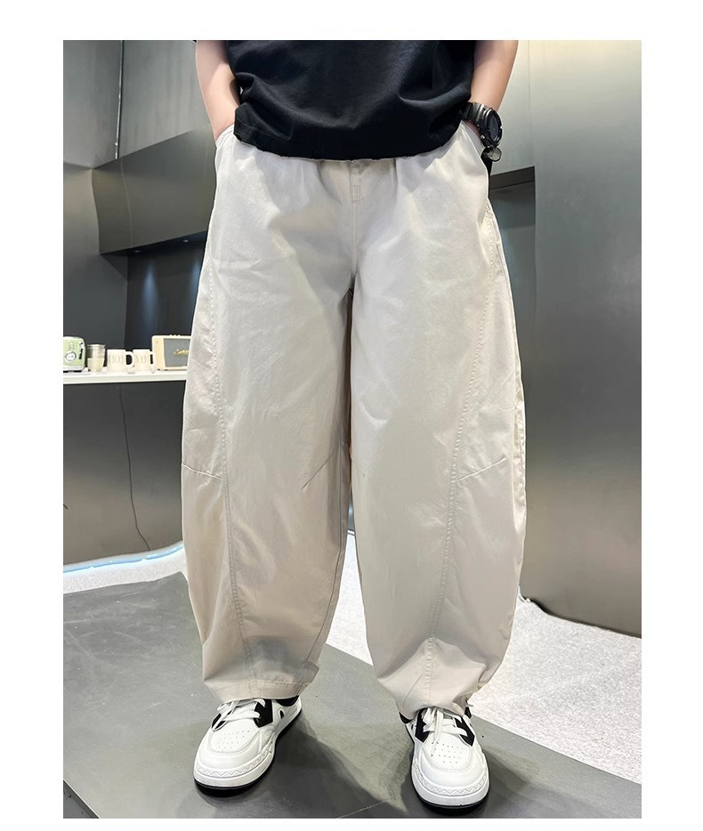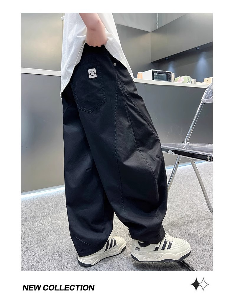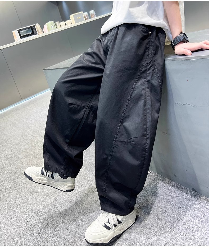 폭발성 소년 여름 얇은 아이스 실크 바지 느슨한 직선 다리 바지 소년 캐주얼 와이드 다리 바지 어린이 올매치 스포츠 바지