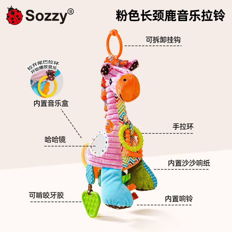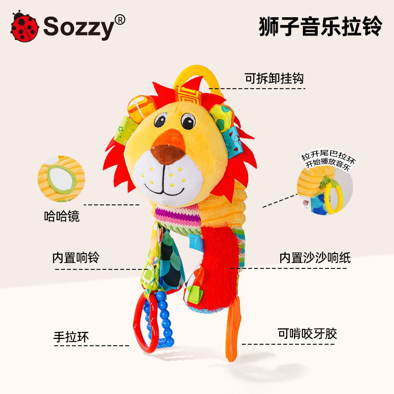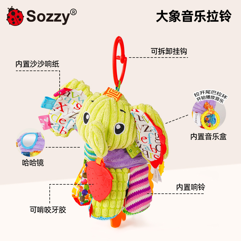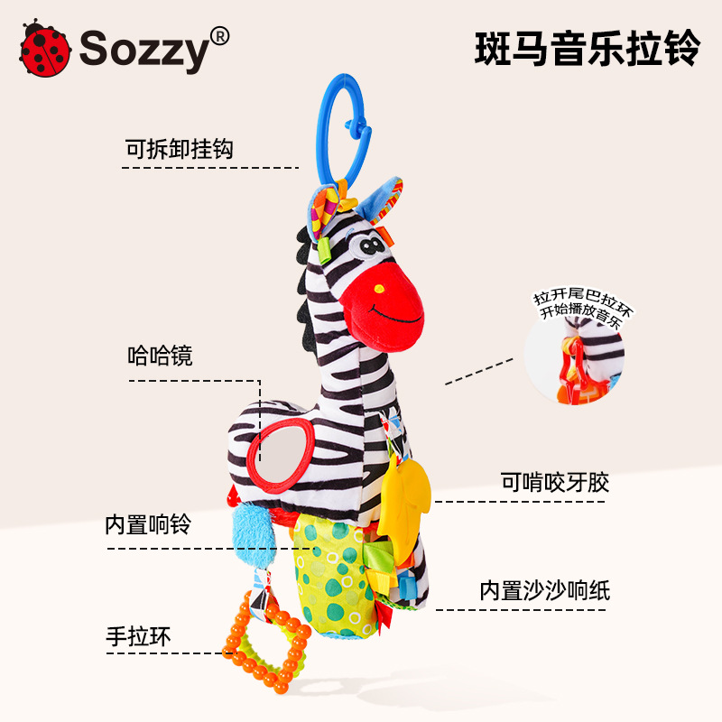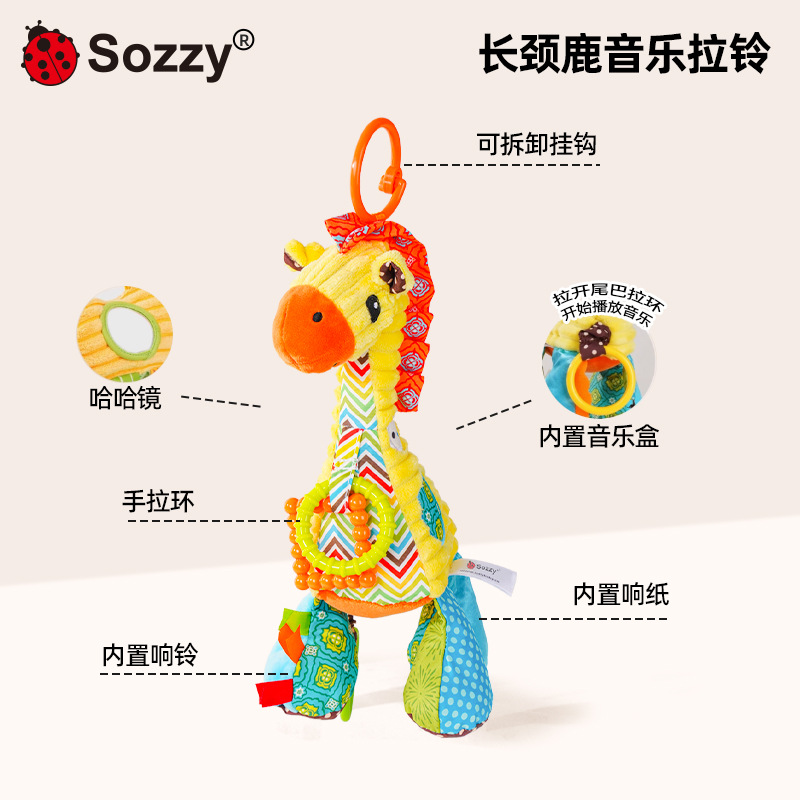 产品介绍:音乐安抚哄睡布玩拉铃 产品内置音乐盒 拉动胶环后优美乐曲随之而出 ,帮助宝宝甜美入梦,多功能拉铃有牙胶 响纸 镜 八音盒 胶圈 采用食品级原材料制造,让宝宝玩得开心 妈妈买得放心!