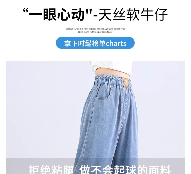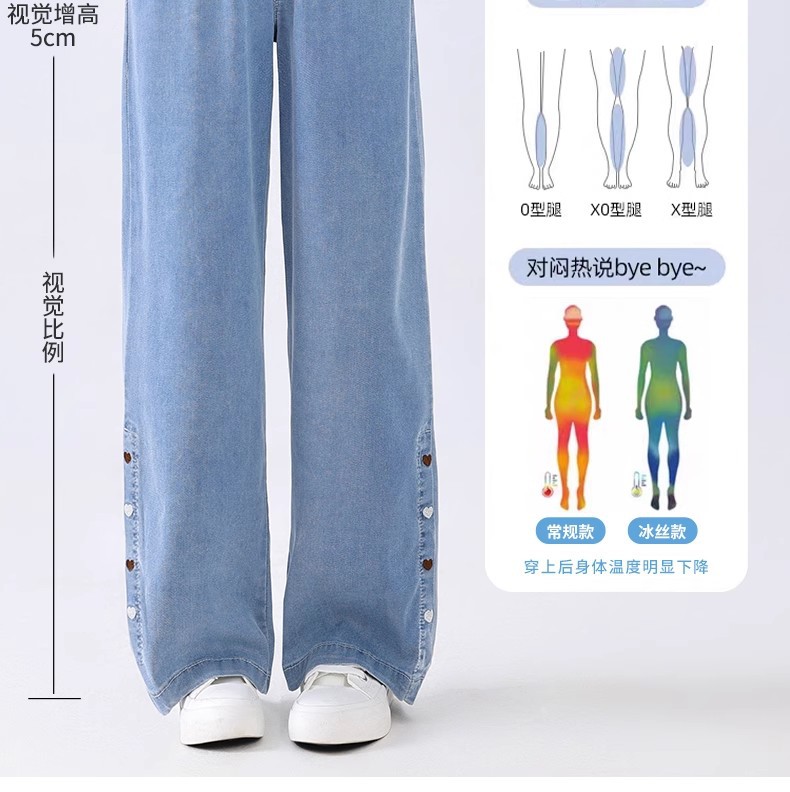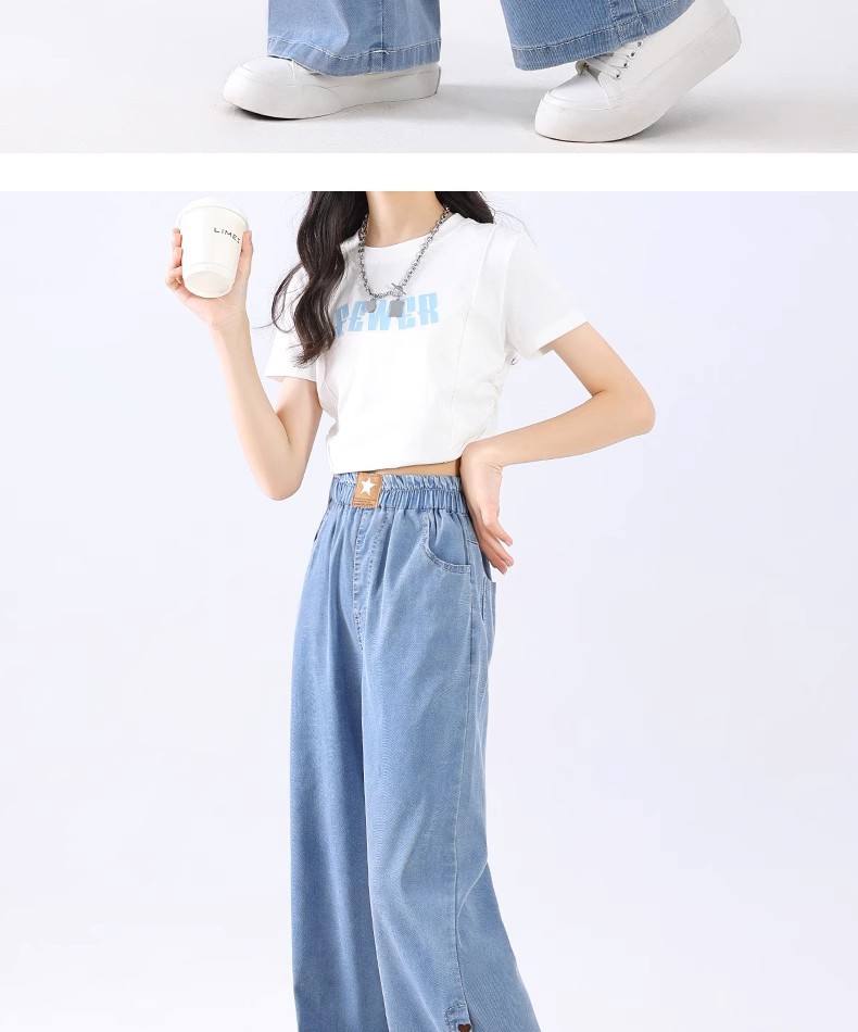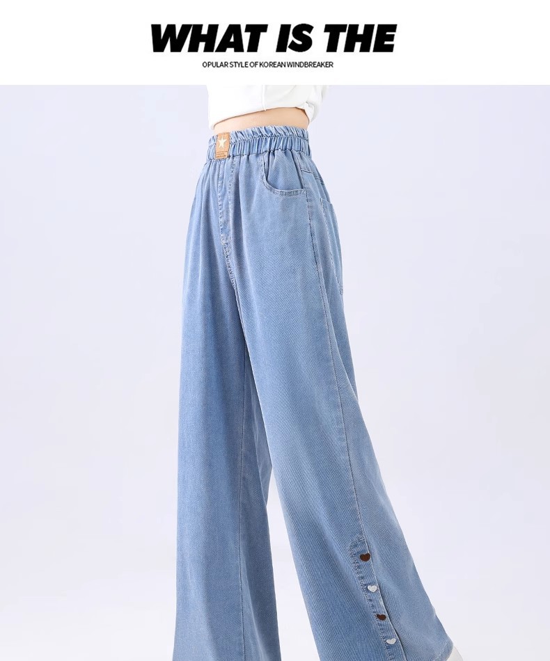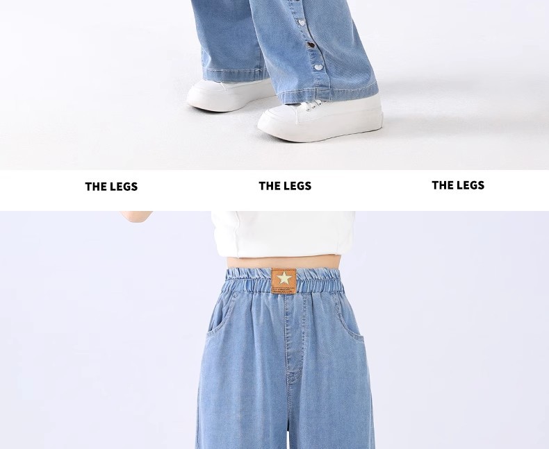 여아 텐셀 청바지, 루즈한 여름 얇은 부츠컷 팬츠, 슬림하고 드레이프한 스트레이트 네로우 와이드 팬츠, 러브 자수스토어 가기