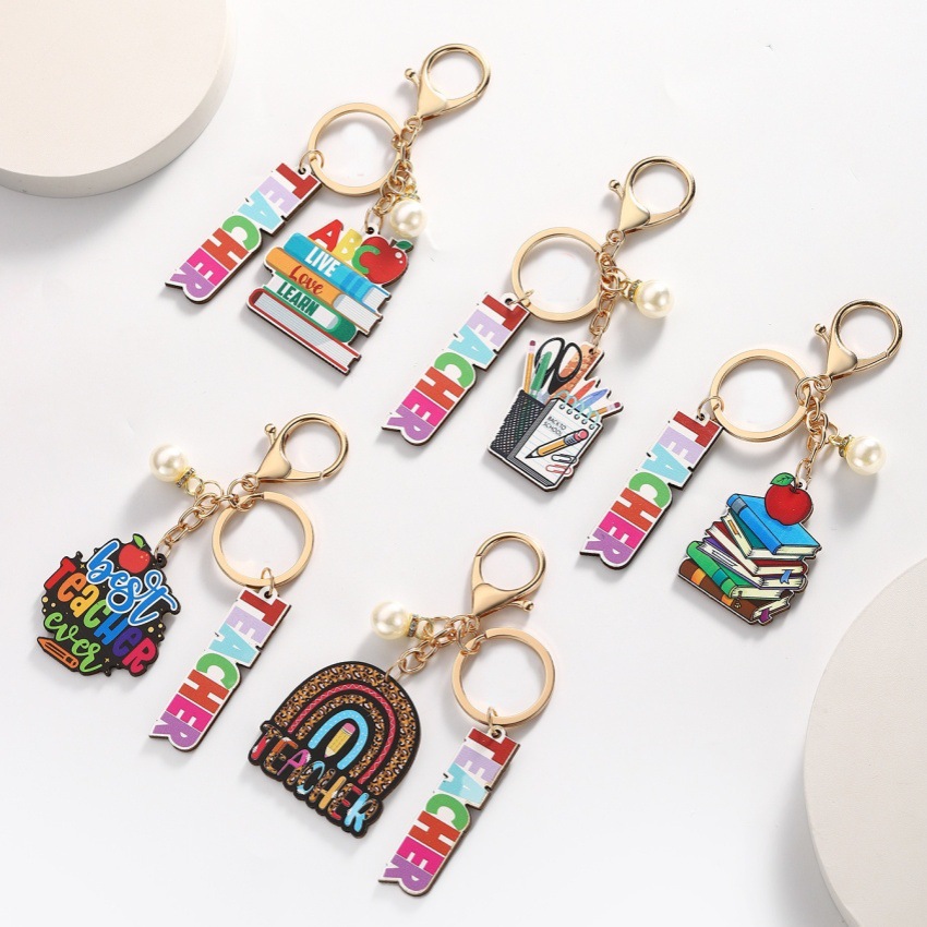 새로운 캠퍼스 스타일 졸업 시즌 BESTTEACHER 나무 책 열쇠고리 펜던트 스승의 날 선물 장식품스토어 가기