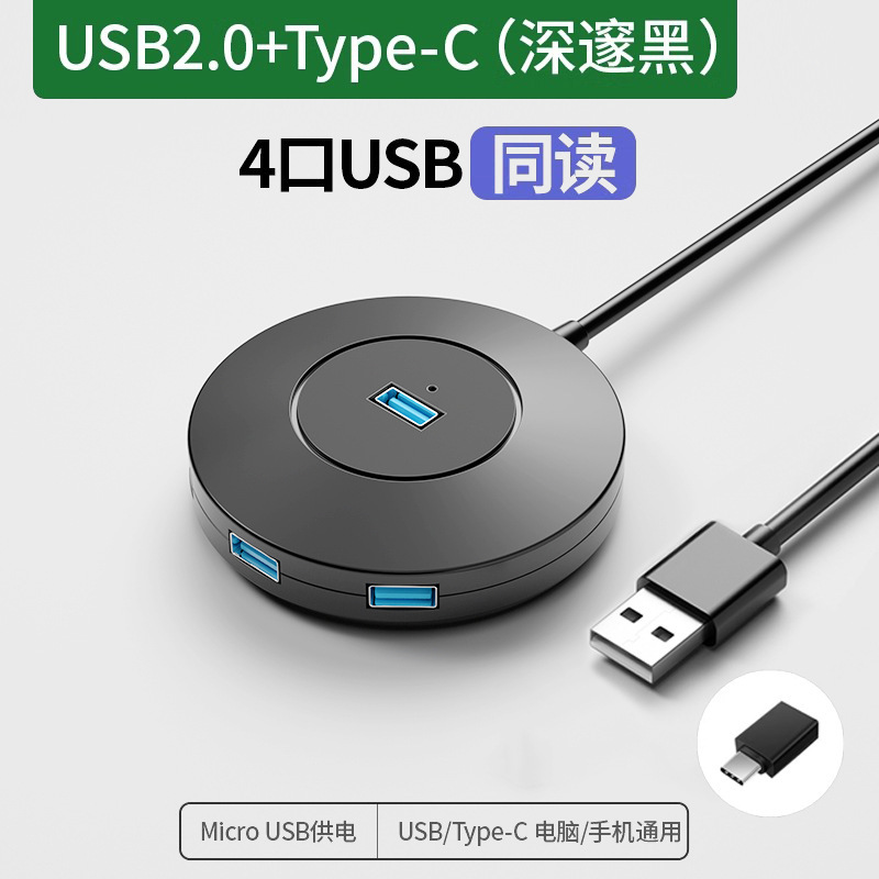• [딥 블랙] 4포트 USB2.0 고속 전송 + Type-C 인터페이스-0.5m