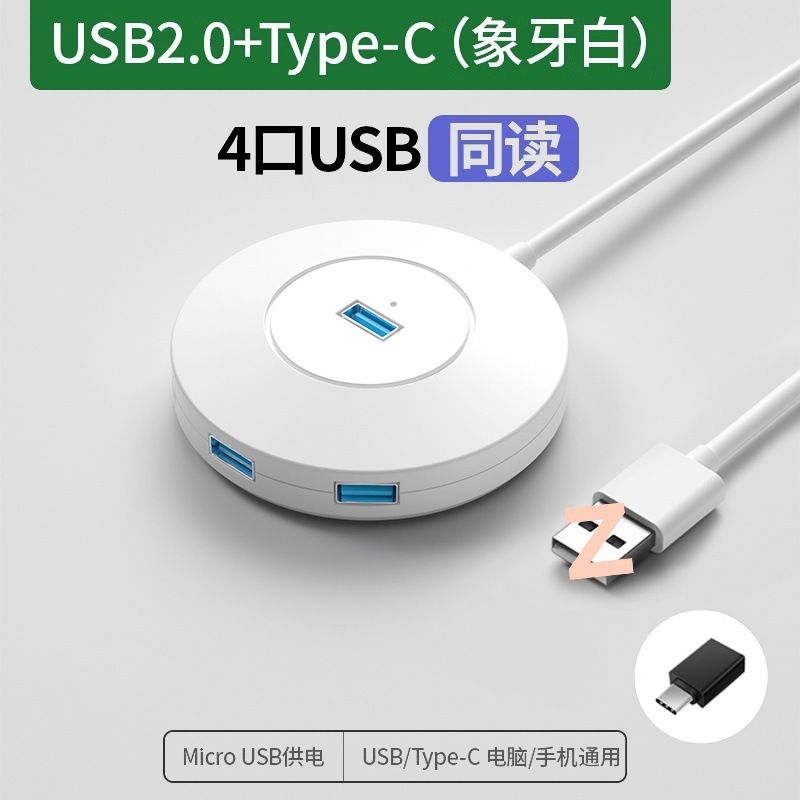 • [아이보리 화이트] USB2.0 고속 전송 4포트 + Type-C 인터페이스-2m