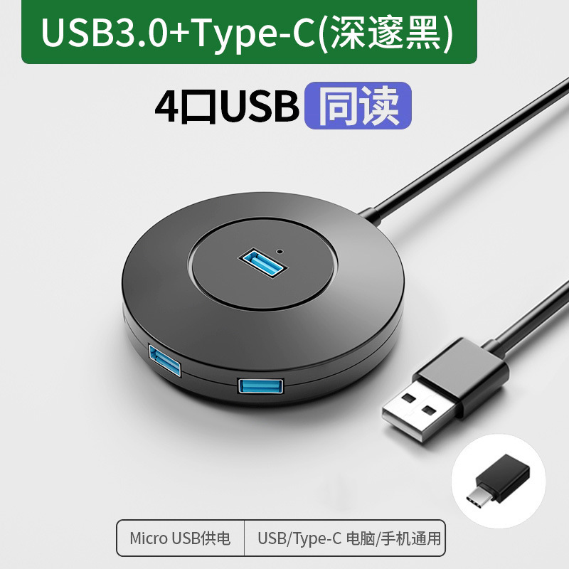 • [딥 블랙] USB3.0 고속 전송 4포트 + Type-C 인터페이스-0.5m