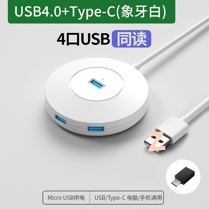• [아이보리 화이트] USB4.0 고속 전송 4포트 + Type-C 인터페이스-2m