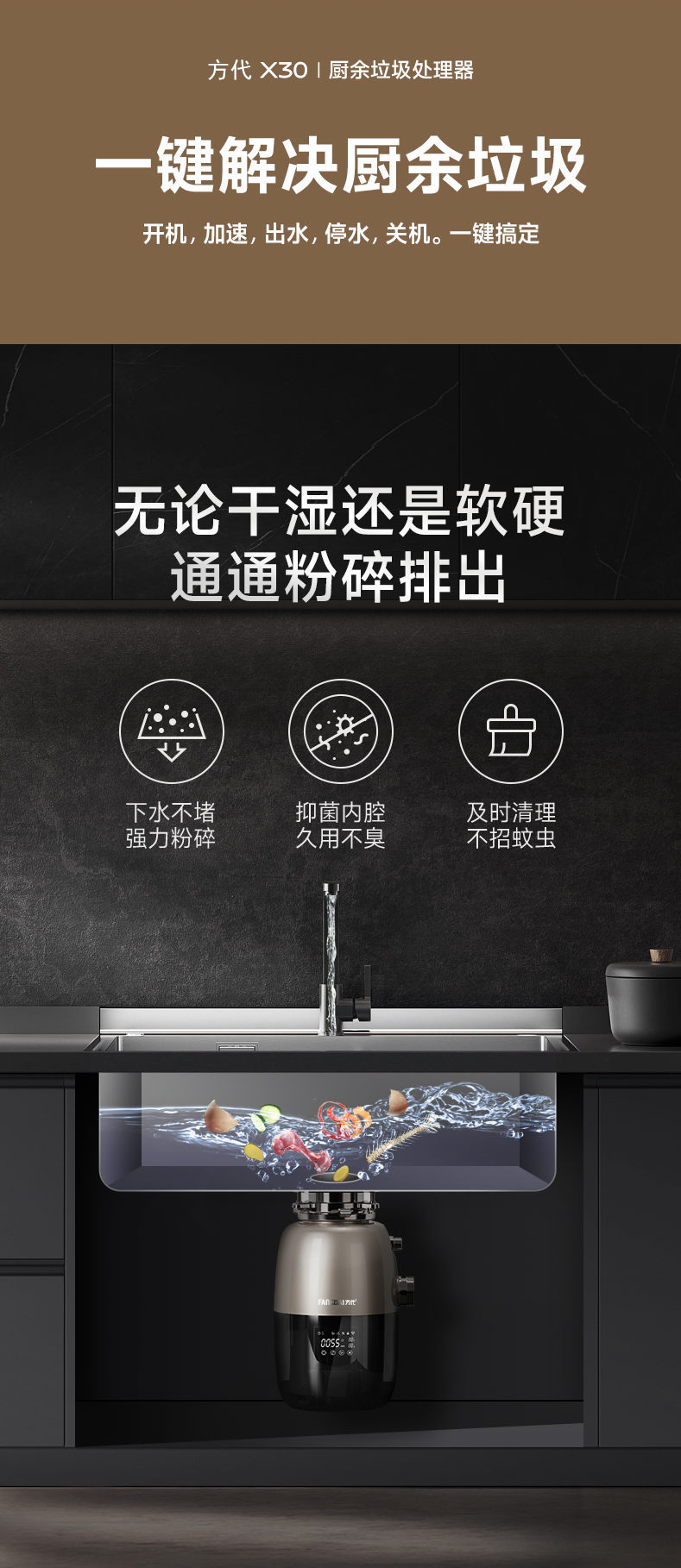 Fangdai X30 주방 음식물 쓰레기 처리기 가변 주파수 타이밍 원격 제어 음식물 쓰레기 분쇄기 가정용 자동 물 공급스토어 가기