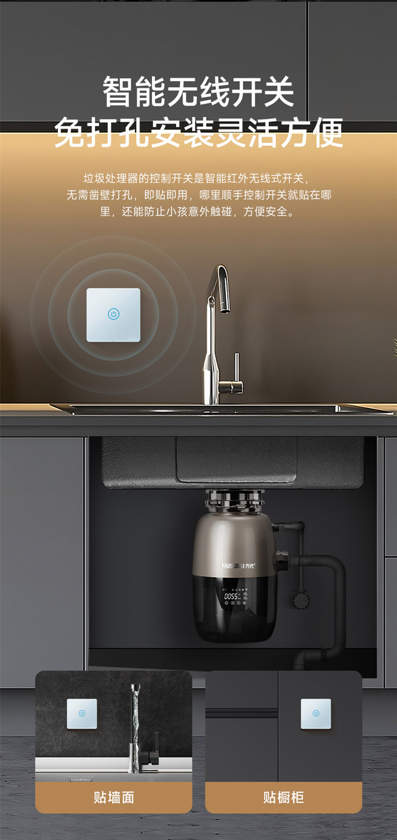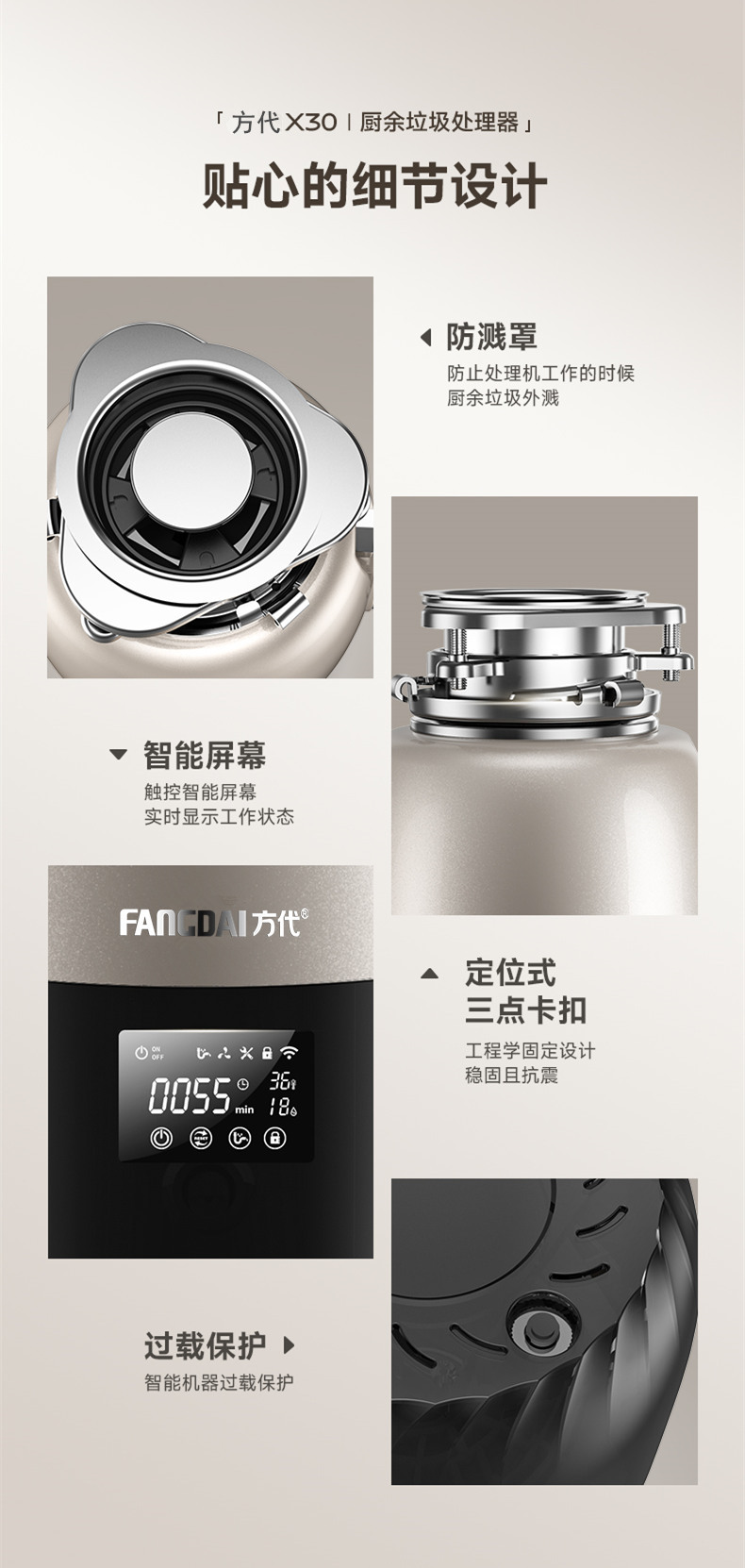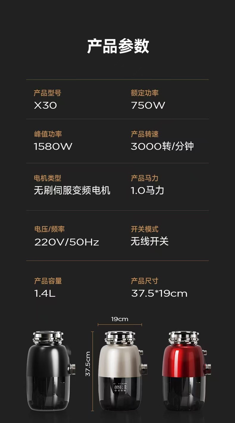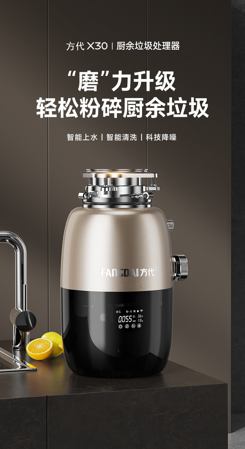 Fangdai X30 주방 음식물 쓰레기 처리기 가변 주파수 타이밍 원격 제어 음식물 쓰레기 분쇄기 가정용 자동 물 공급