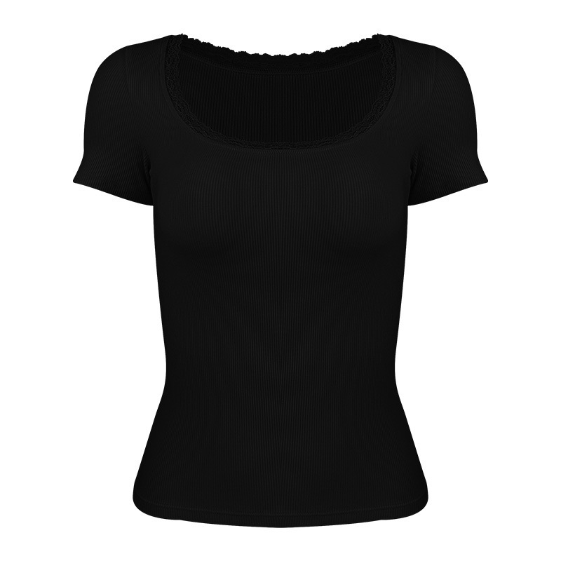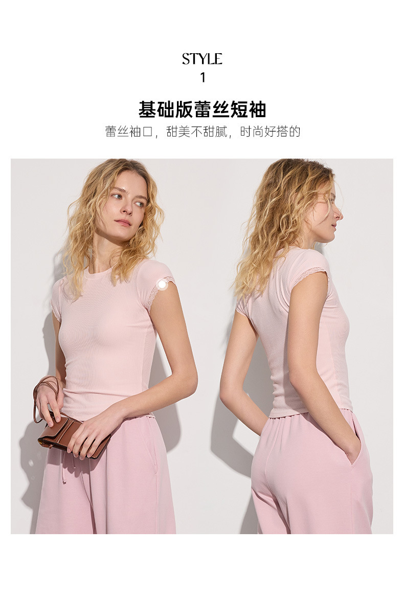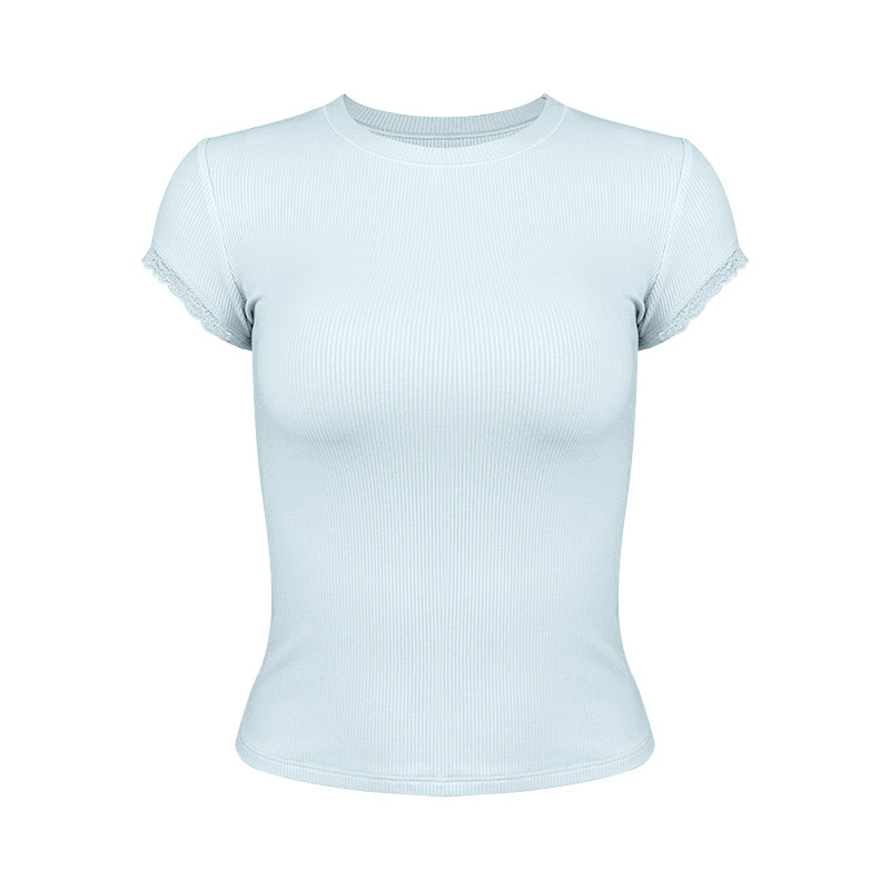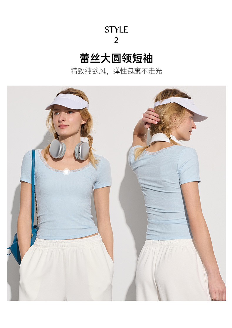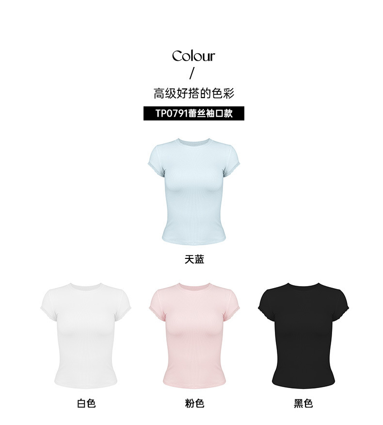 2025 가을 겨울 여성용 요가복, 레이스 소매 스포츠 반팔 텐셀 모달 골지 고탄력 통기성 피트니스복스토어 가기