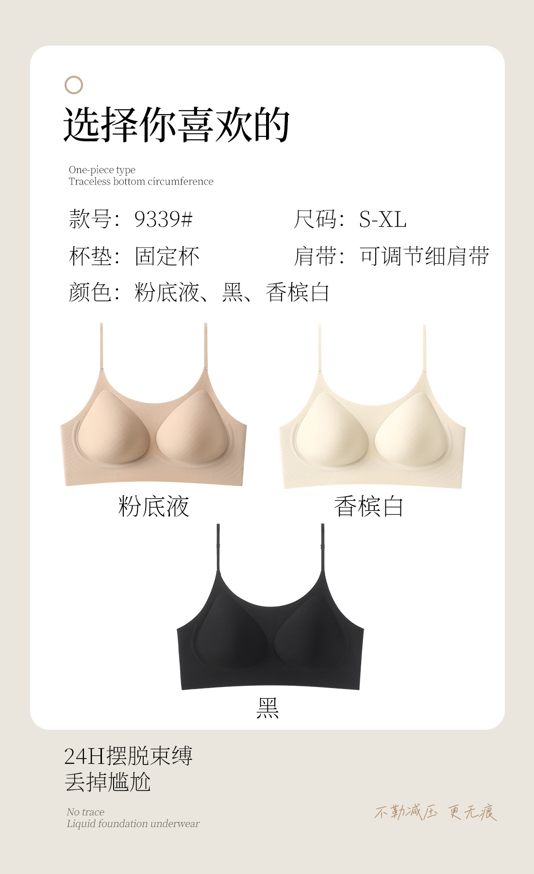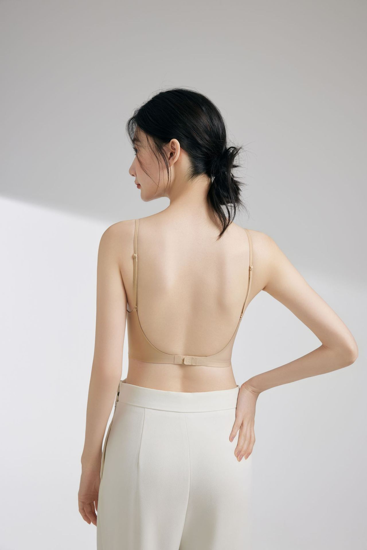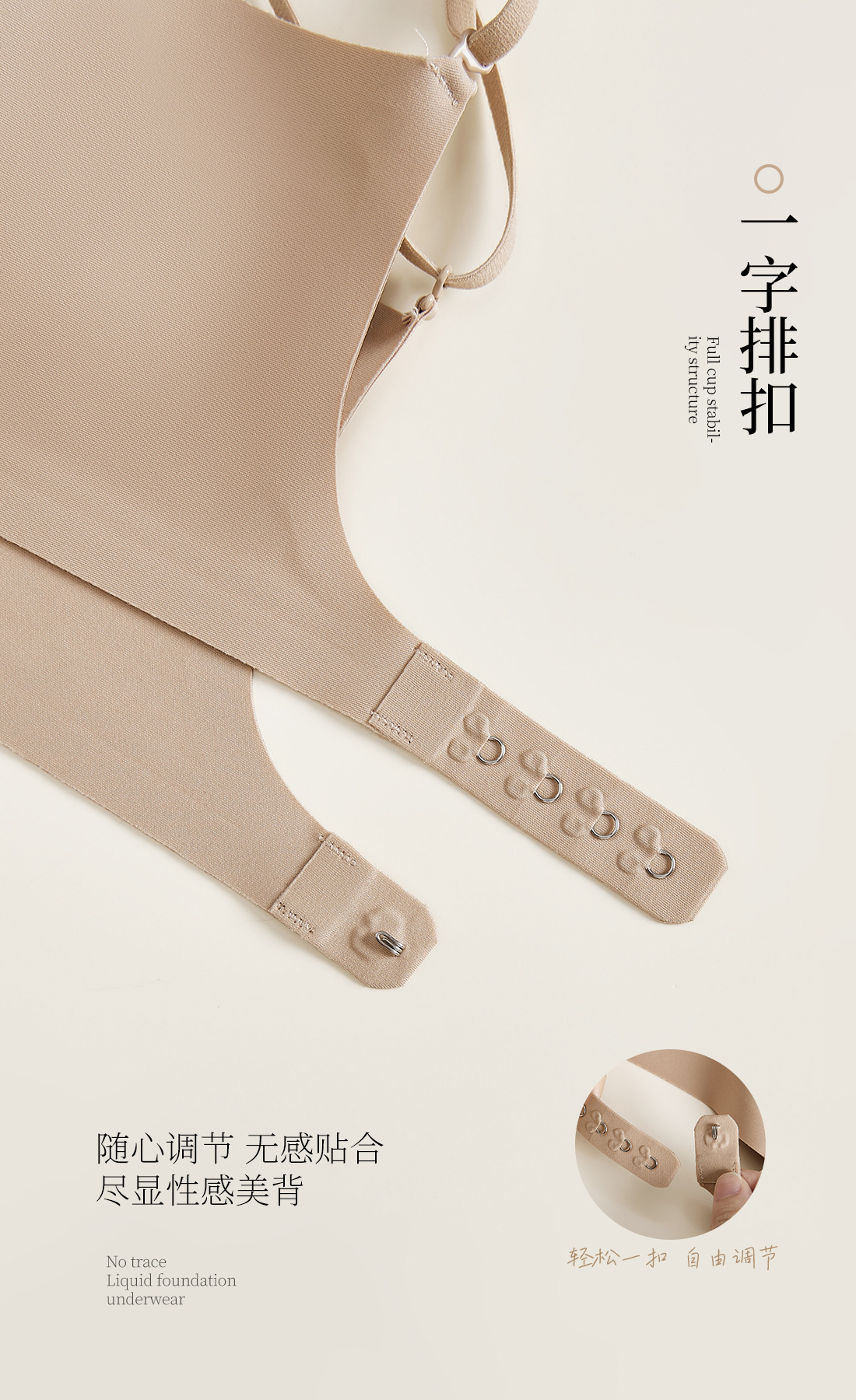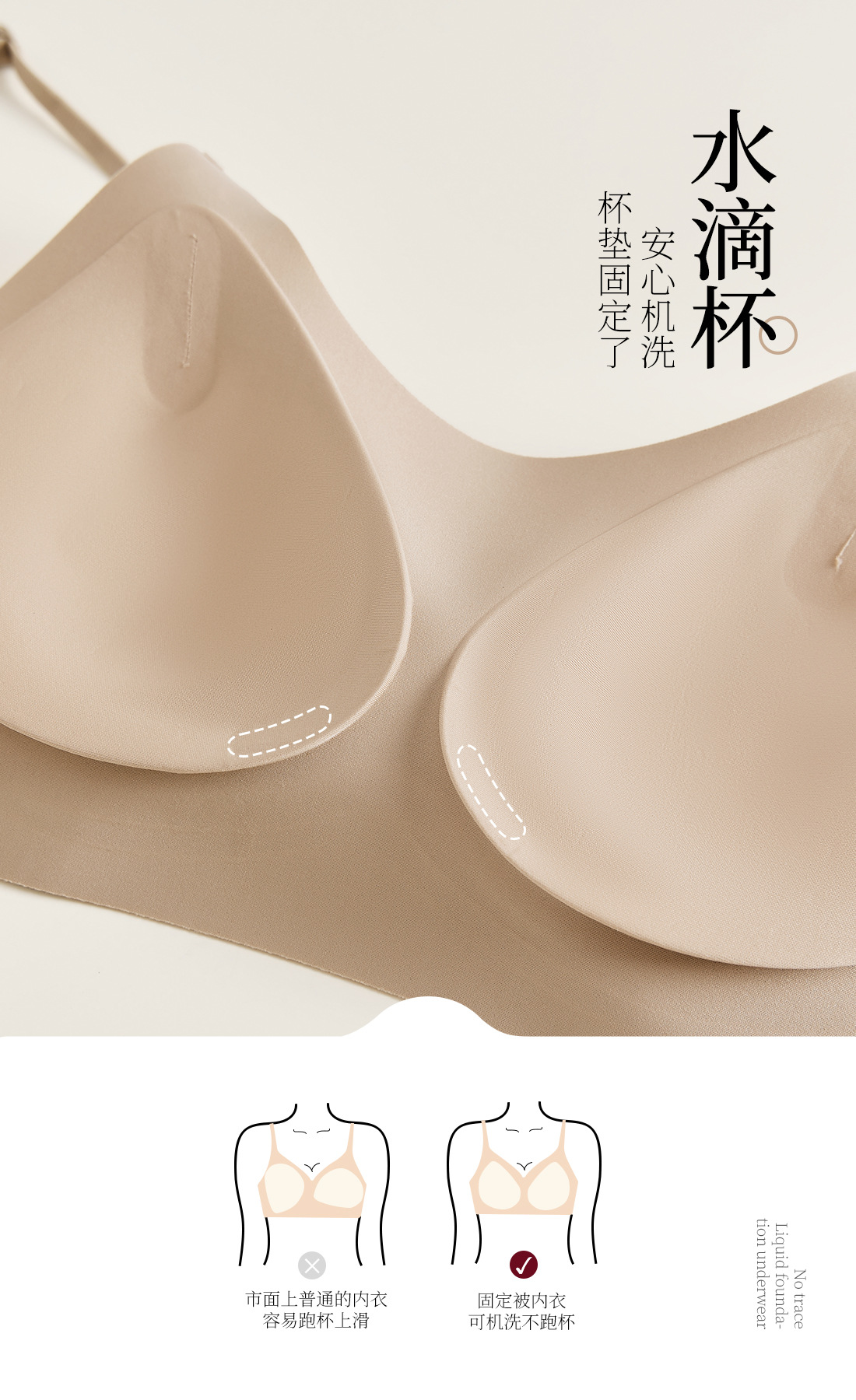 흔적없는 투명 파운데이션형 여성 속옷, 얇은 노와이어 편안한 고정컵, 작은 가슴을 모아주는 아름다운 등 라인 조절 브라