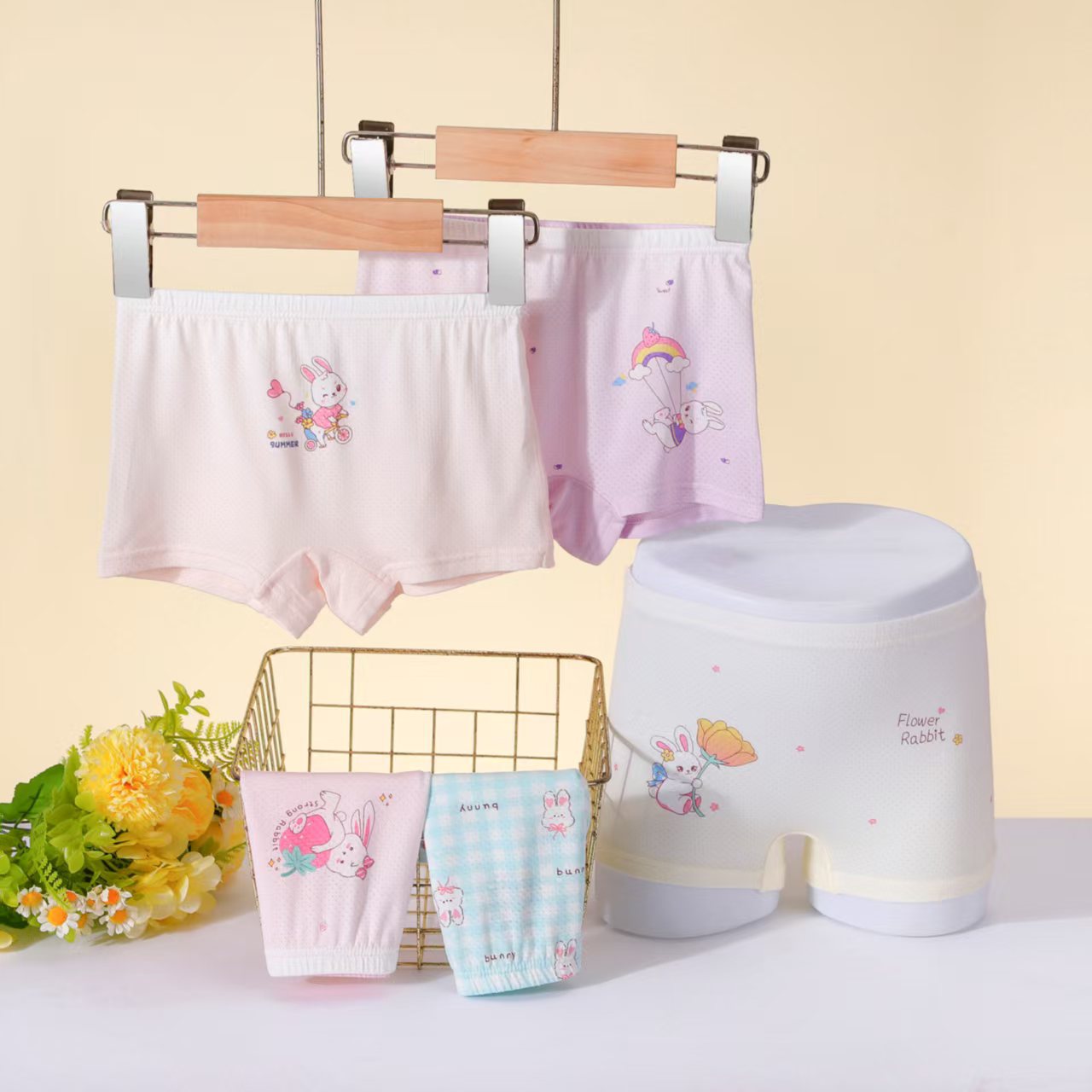 새로운 여아 속옷, 복서 스타일, A급 만화 토끼, 귀여운 어린이 복서 반바지, 통기성, PP 카드 용지 없음스토어 가기
