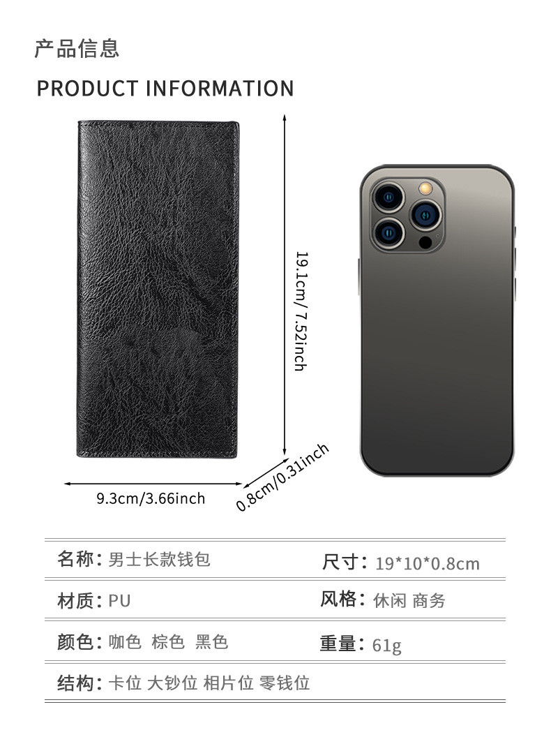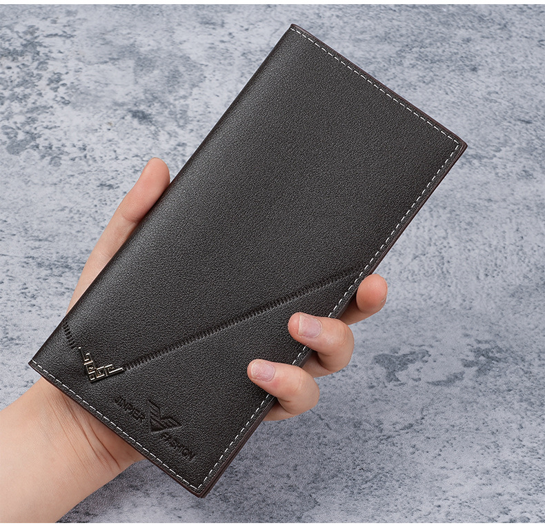새로운 남성용 지갑, 남성용 긴 지갑, 세로형 얇은 청소년용 부드러운 지갑, 멀티 카드 슬롯, 대용량 패션 슈트 가방스토어 가기