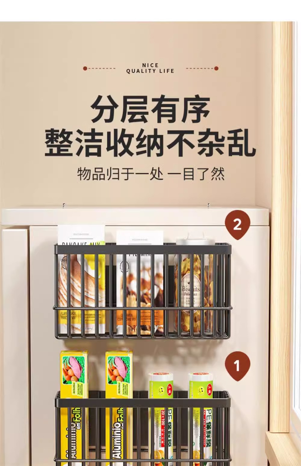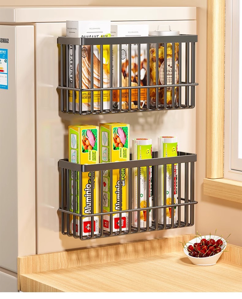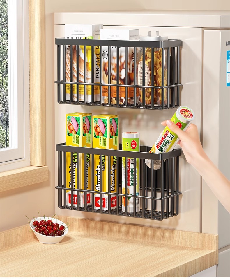주방냉장고 자석수납선반, 신선보관봉투, 티슈티, 양념통, 접착필름 수납선반
