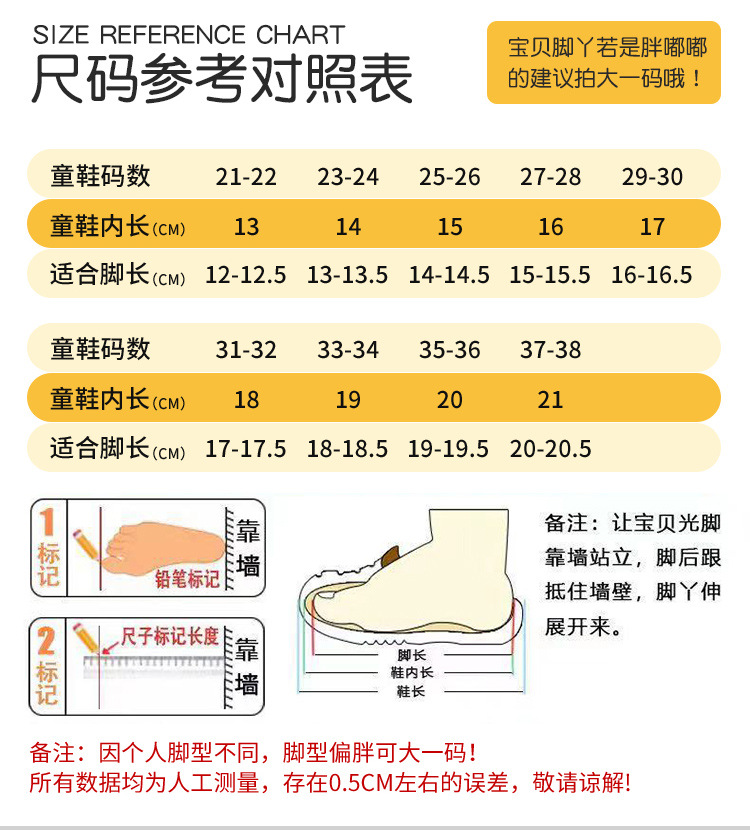 • 21/22 [내부 길이 13cm] 발 길이 약 12cm에 적합