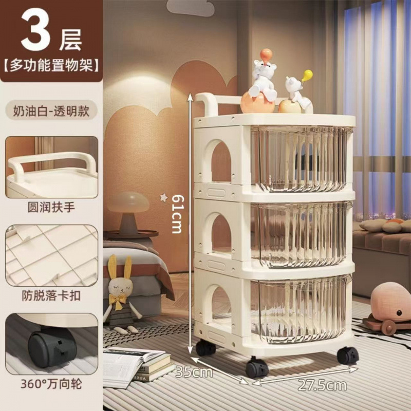 작은 카트 간식 저장 랙 아기 제품 저장 바닥 모바일 아기 가정용 장난감 저장 랙 크림
