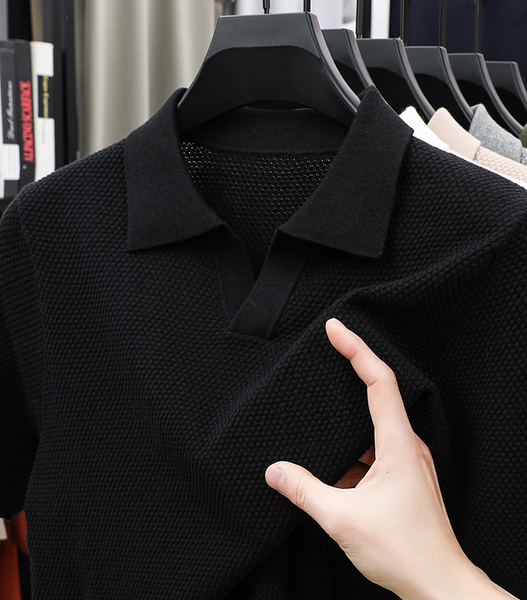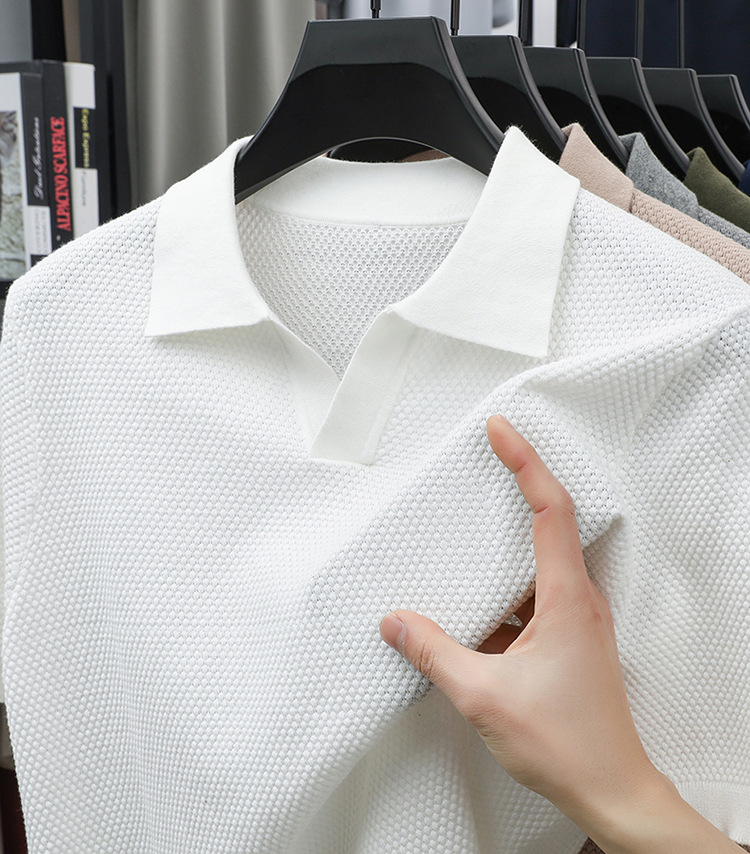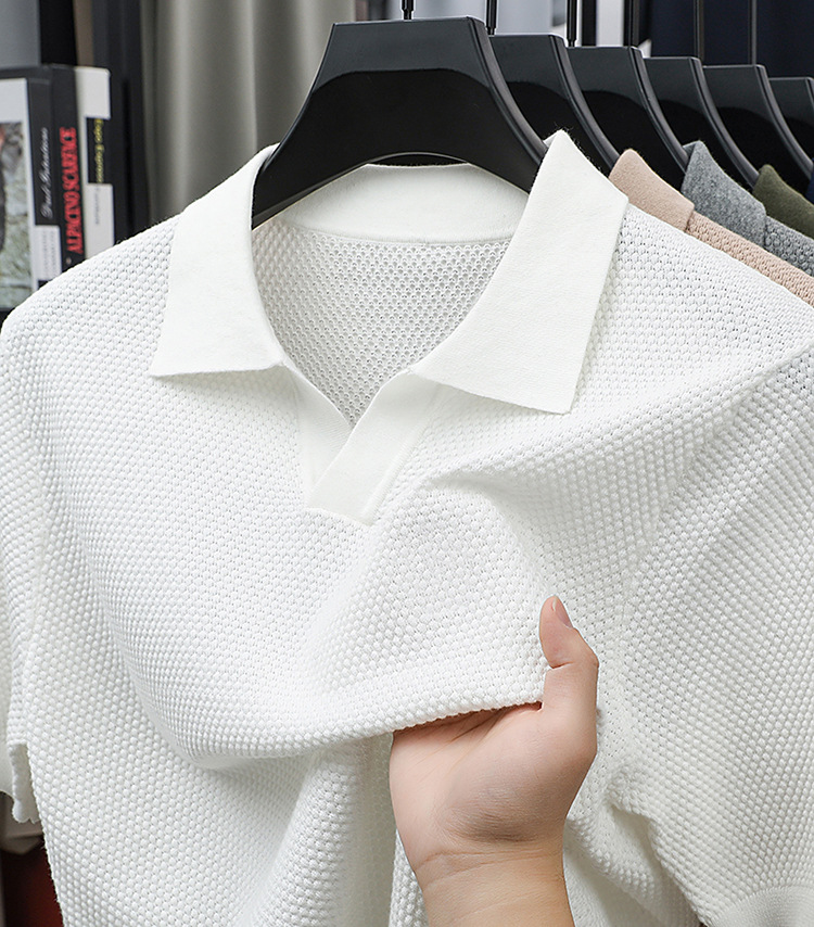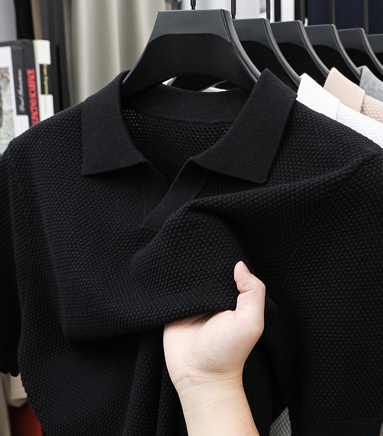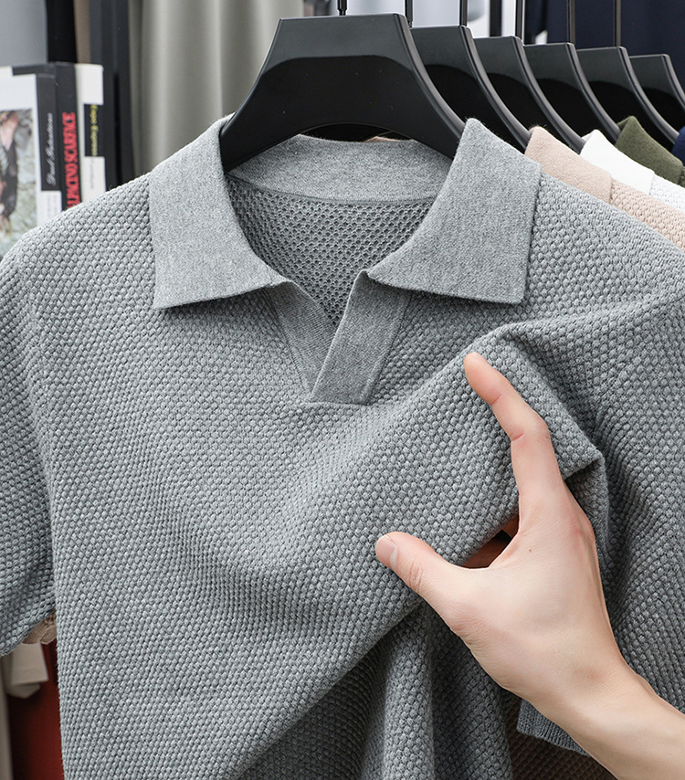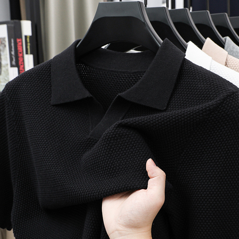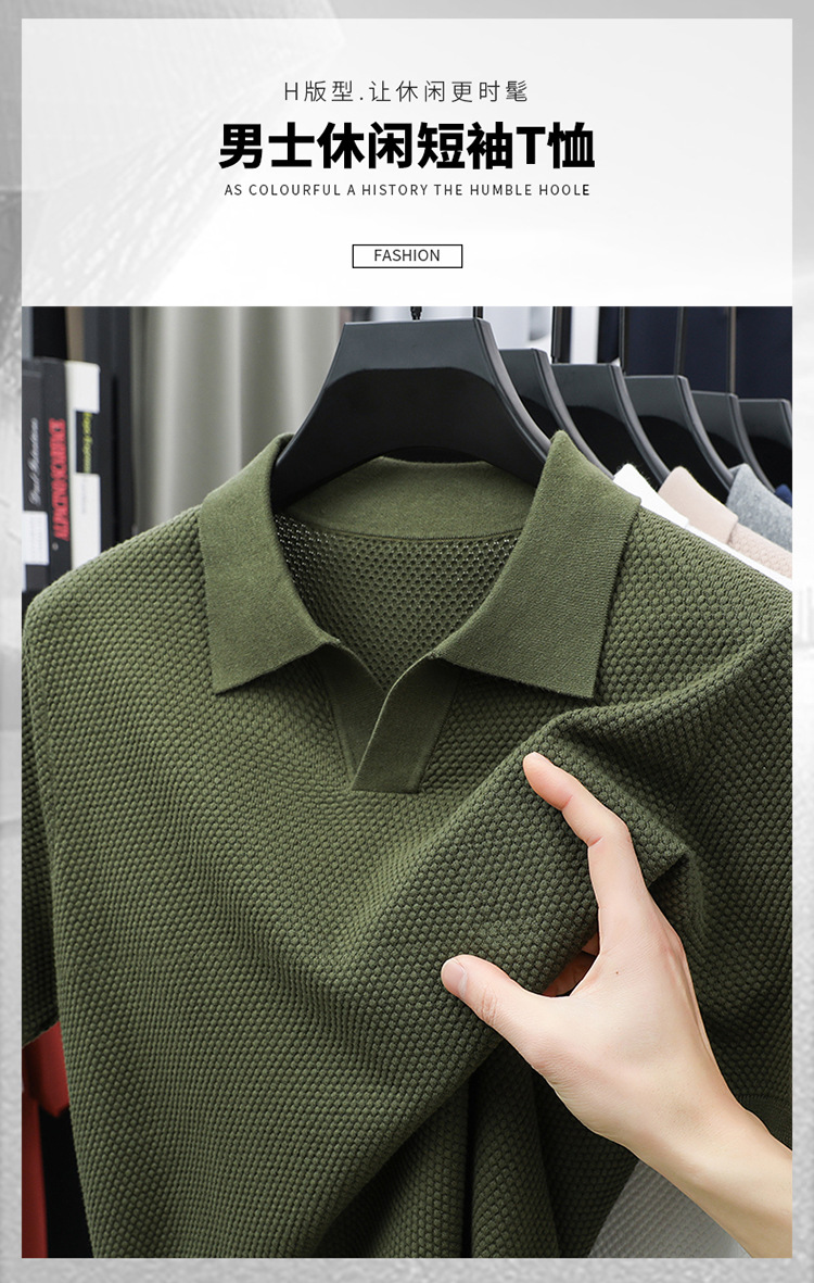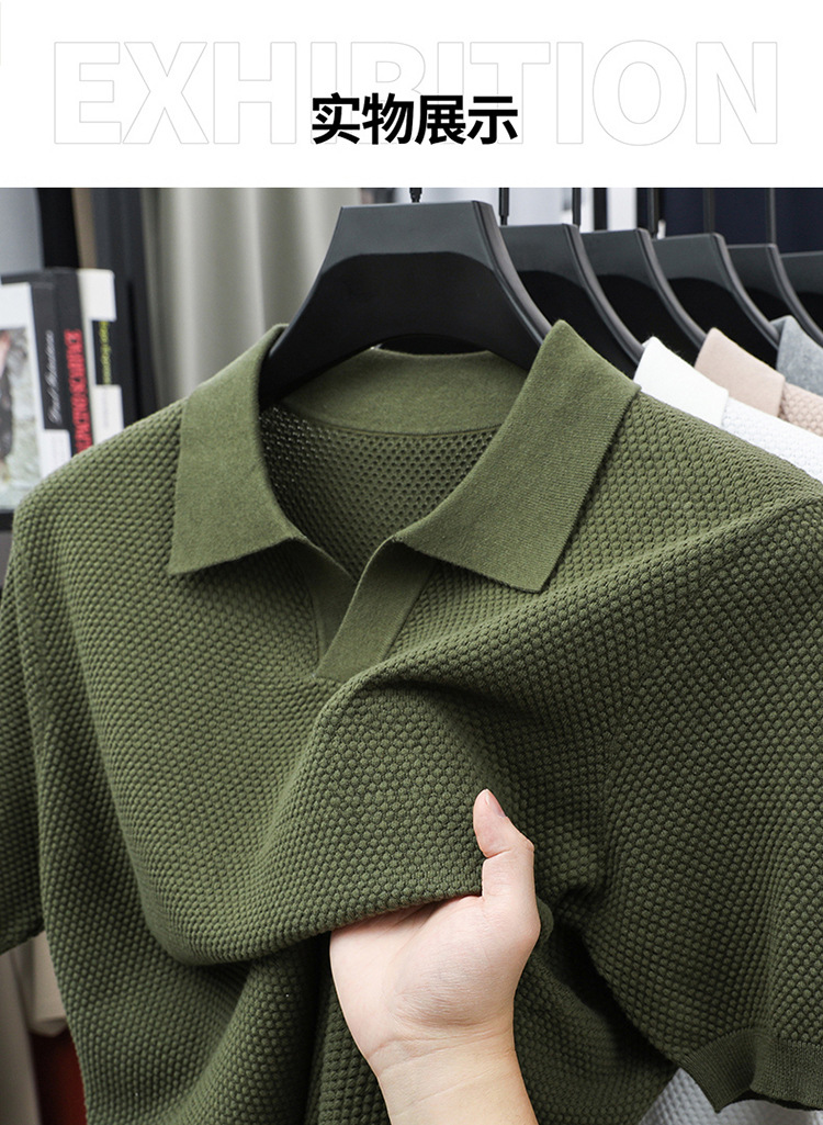 라이브 폭발 퓨어 코튼 갈매기 칼라 파인애플 니트 반팔 남성 티셔츠 여름 얇은 패션 남성 V 넥 폴로 셔츠