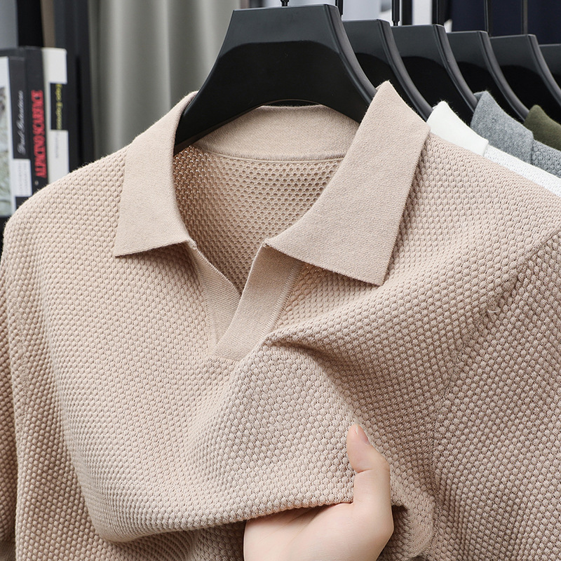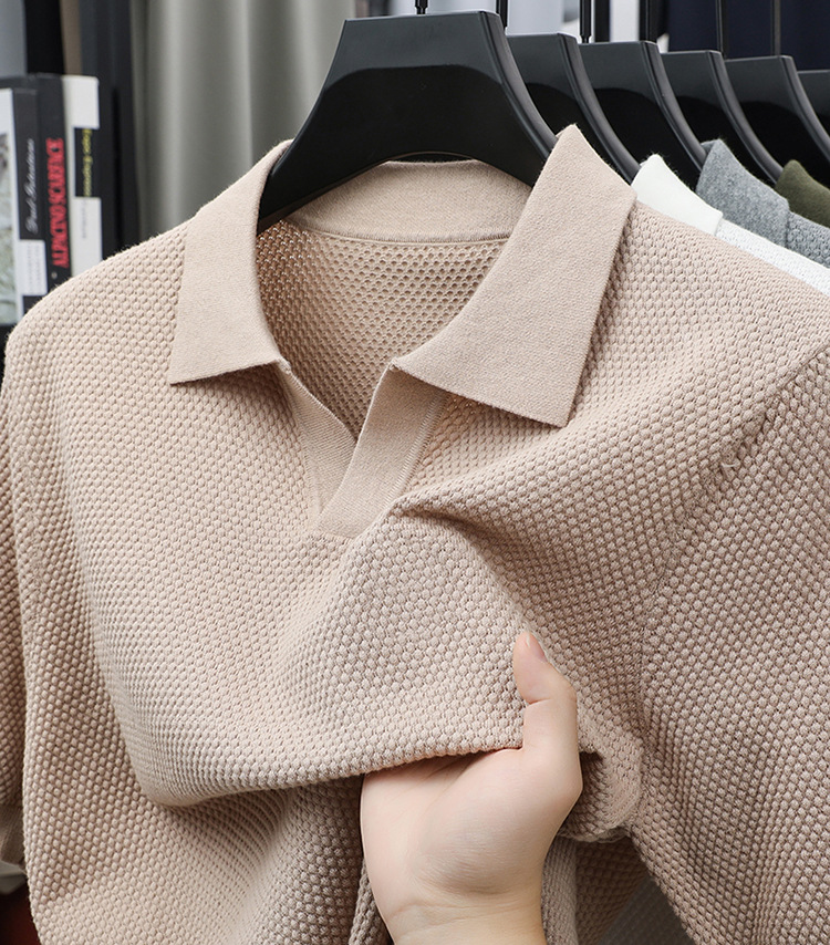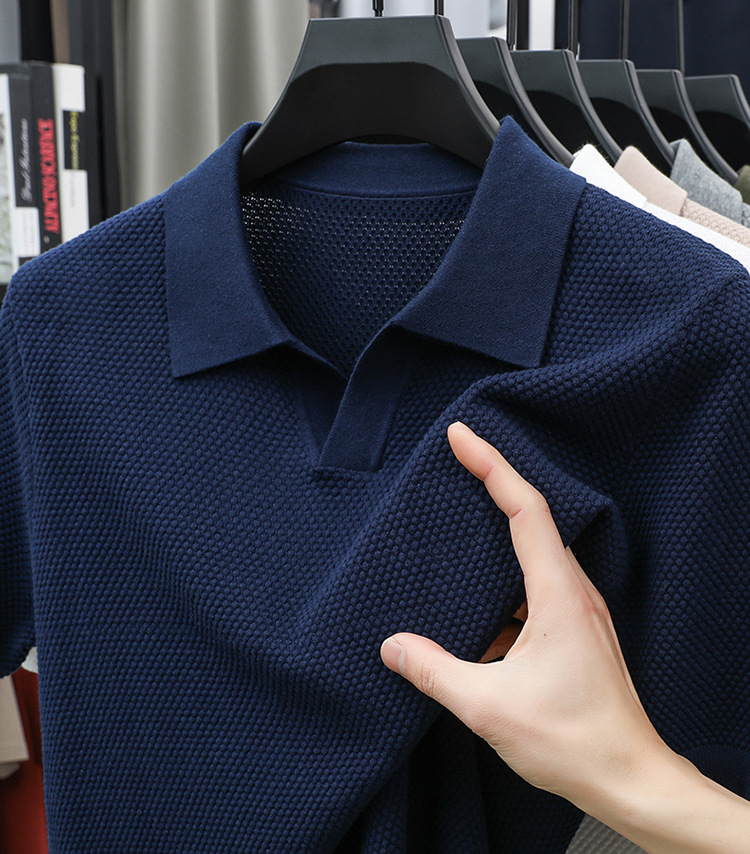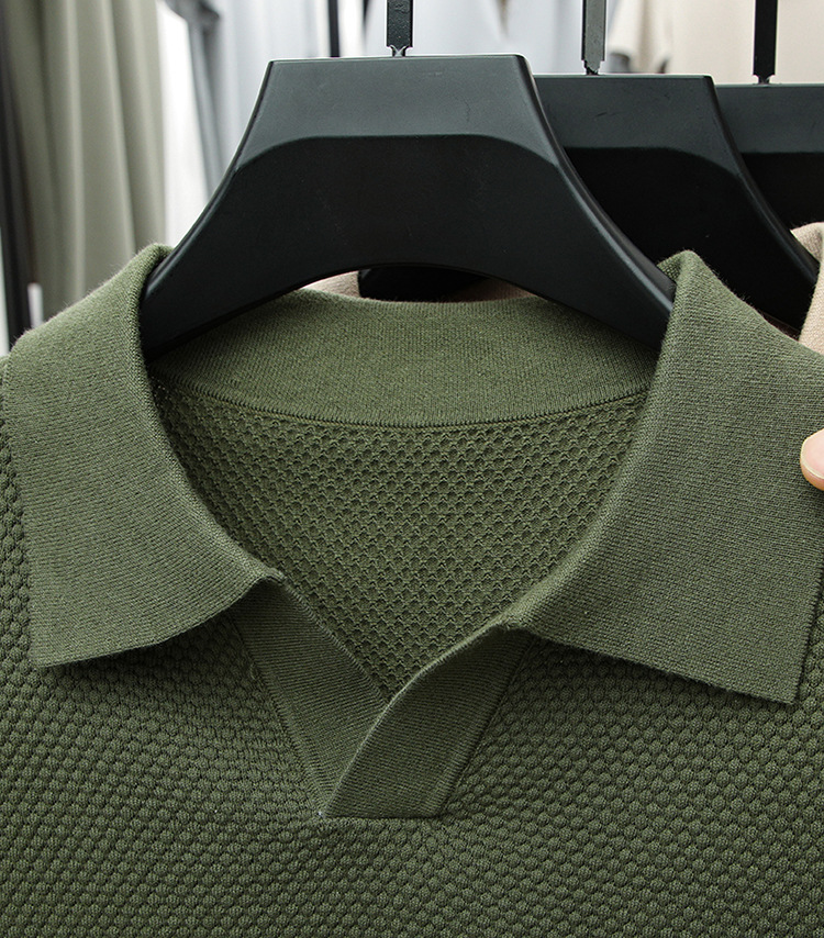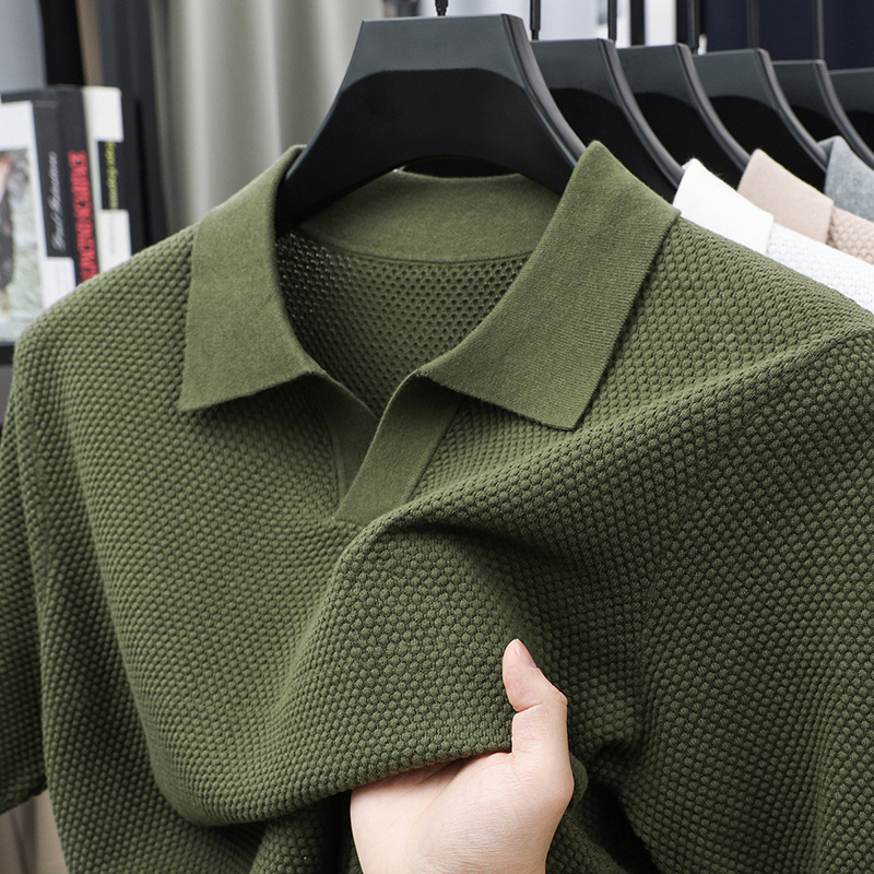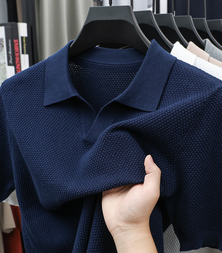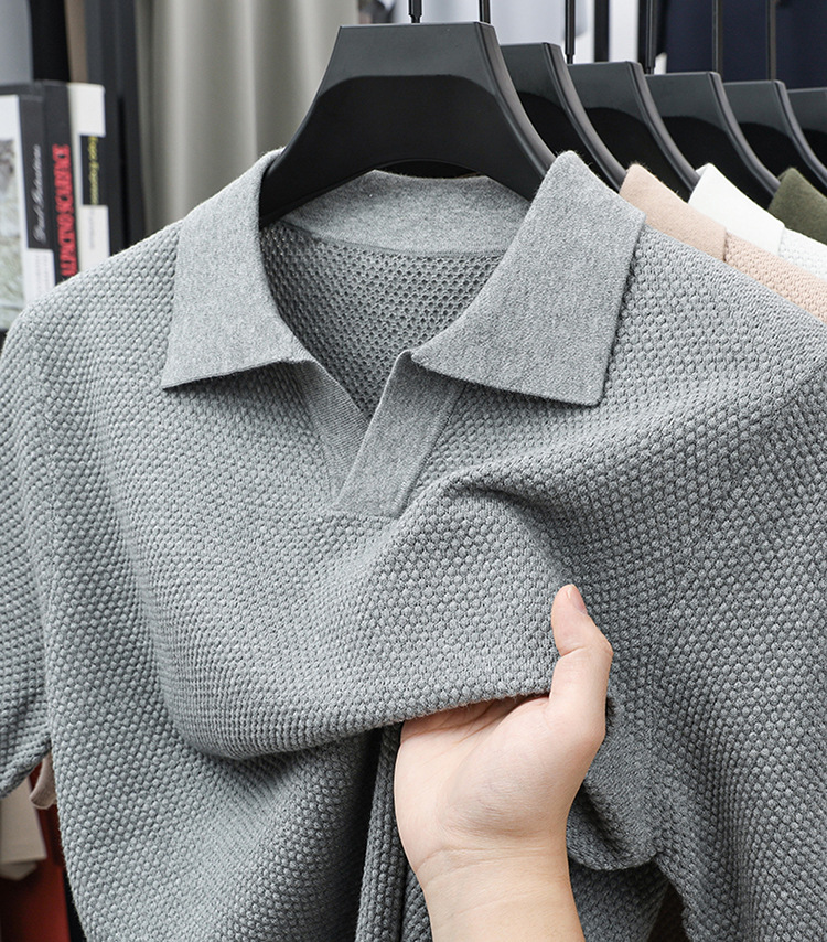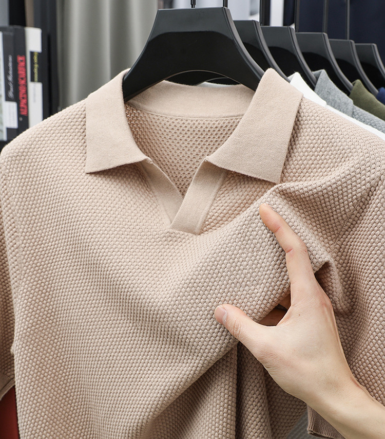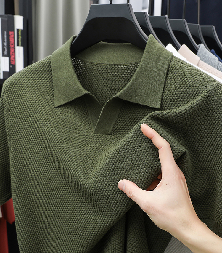 라이브 폭발 퓨어 코튼 갈매기 칼라 파인애플 니트 반팔 남성 티셔츠 여름 얇은 패션 남성 V 넥 폴로 셔츠