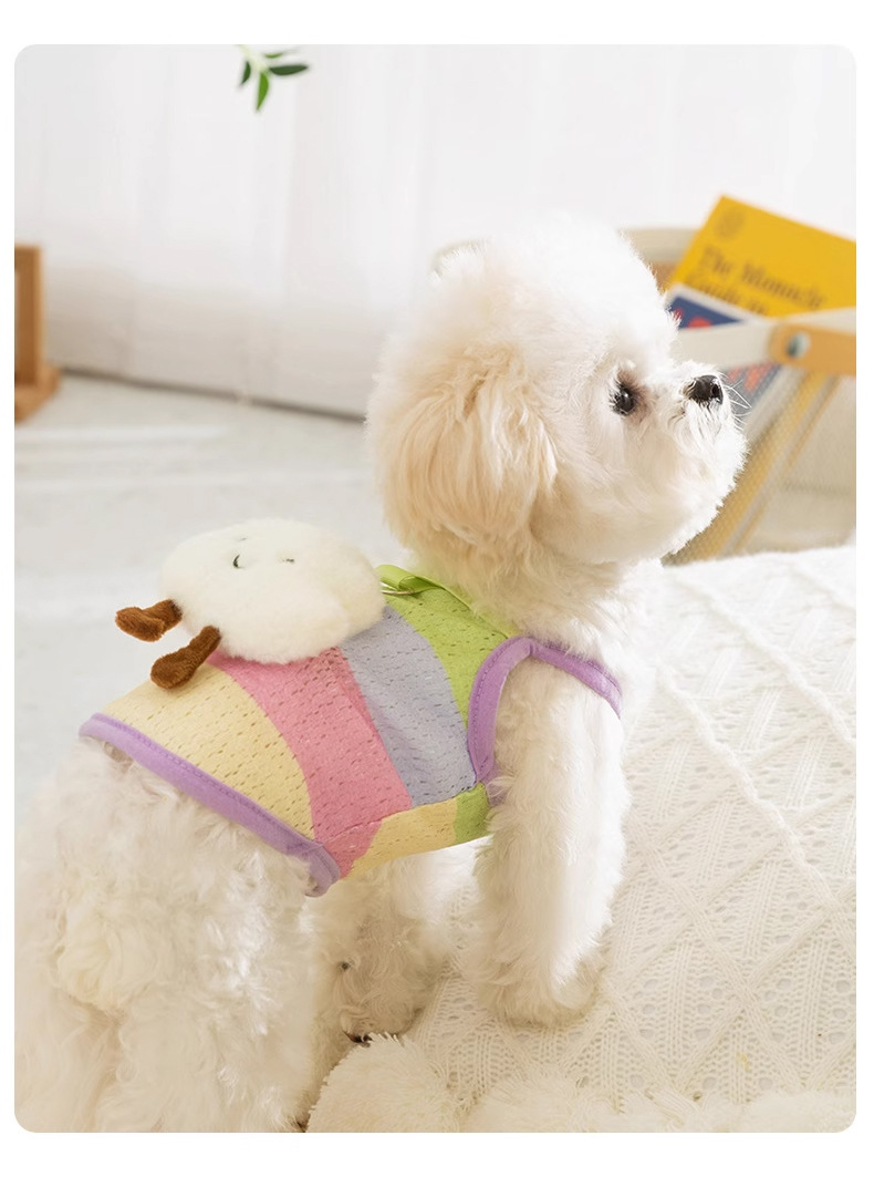 봄과 여름 개 무지개 줄무늬 입체 구름 견인 슬링 비숑 테디 고양이 귀여운 애완견 옷스토어 가기