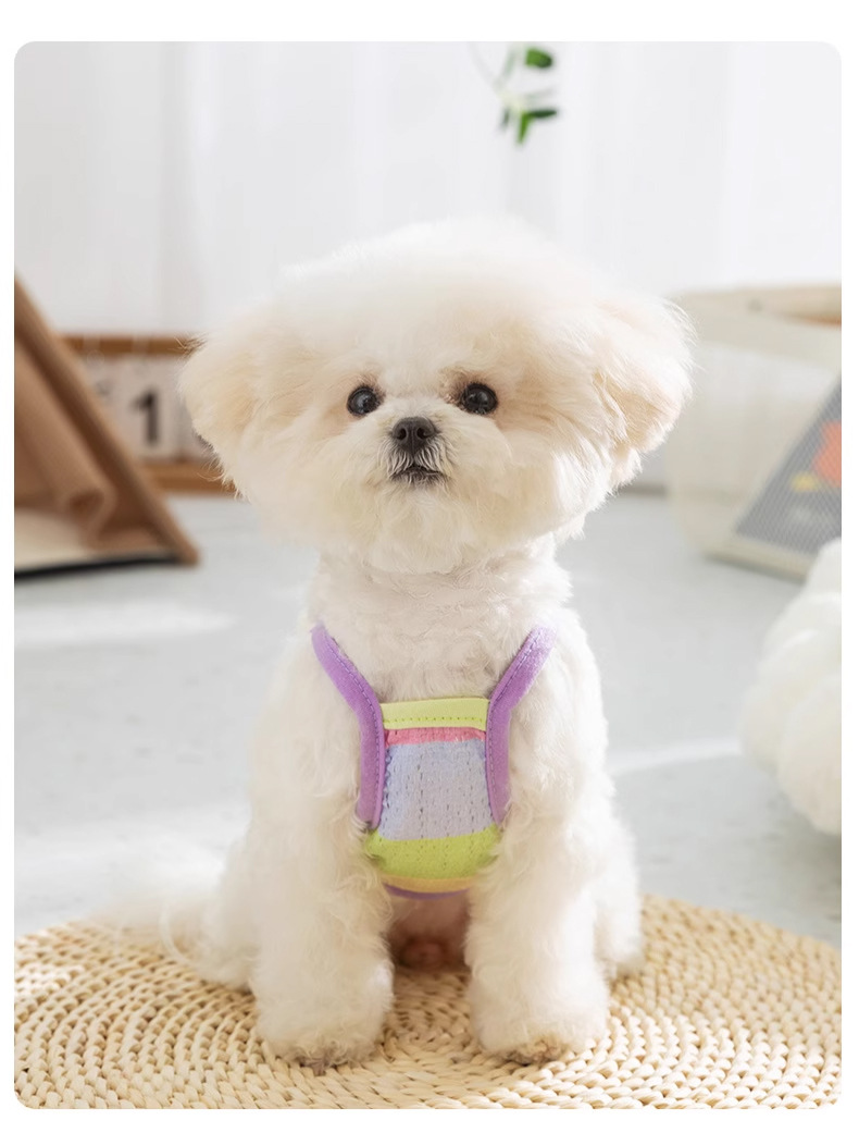 봄과 여름 개 무지개 줄무늬 입체 구름 견인 슬링 비숑 테디 고양이 귀여운 애완견 옷