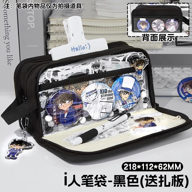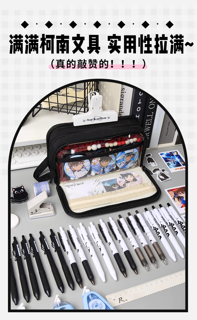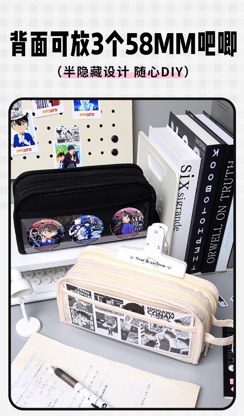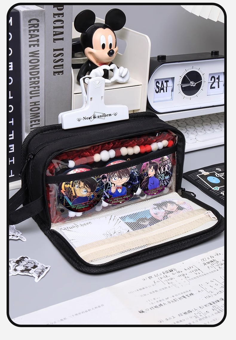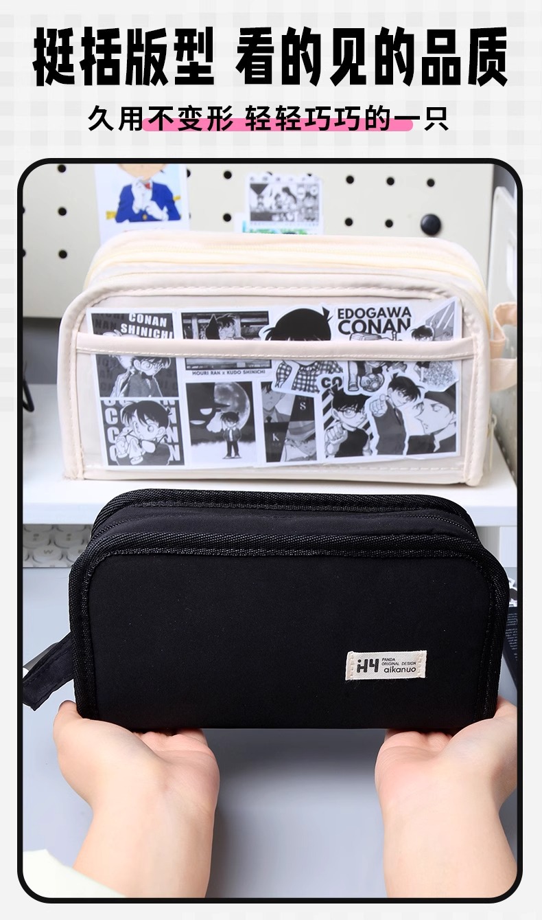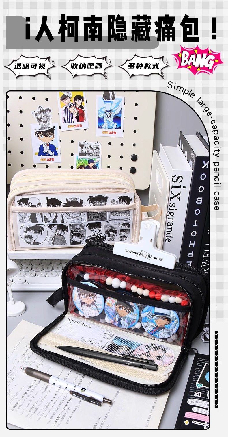 명탐정 코난 연필 가방 2차원 통증 가방 문구 상자 학생 고급스러운 대용량 간단한 투명 연필 가방
