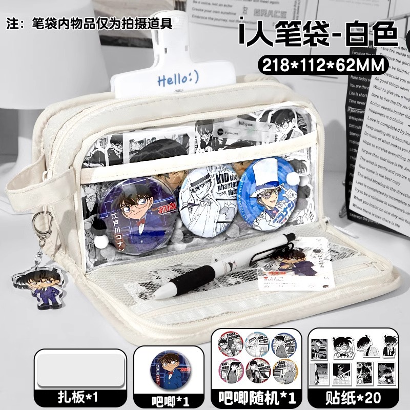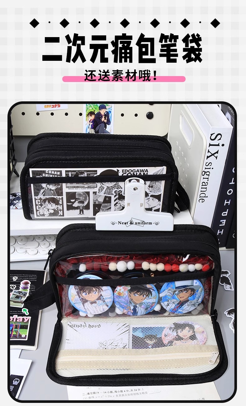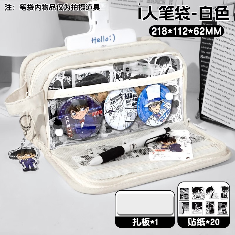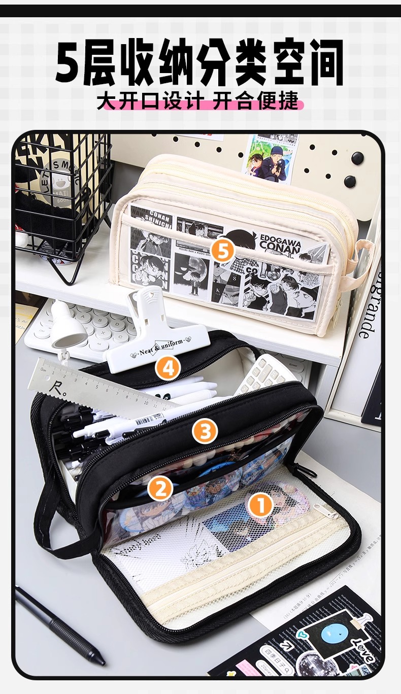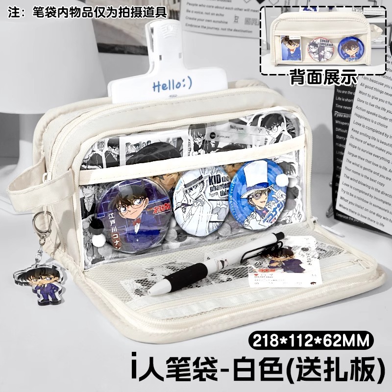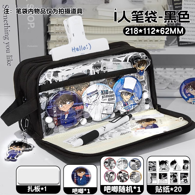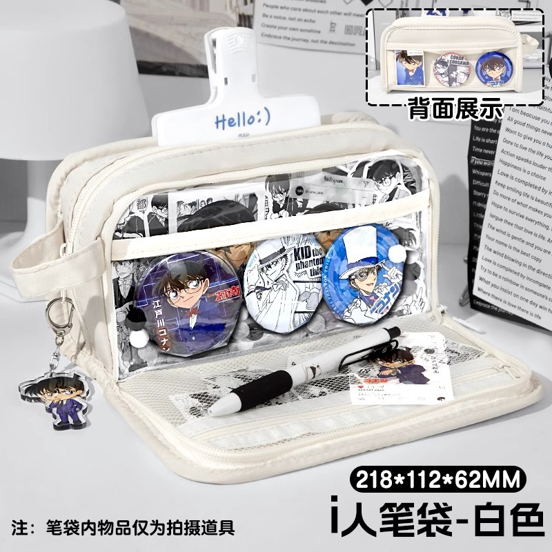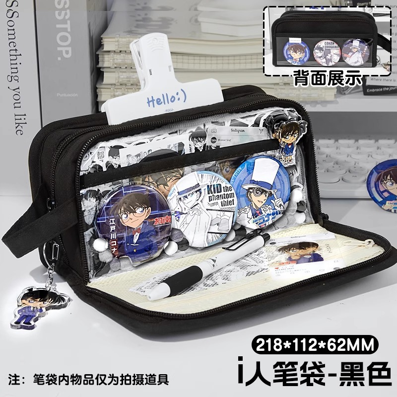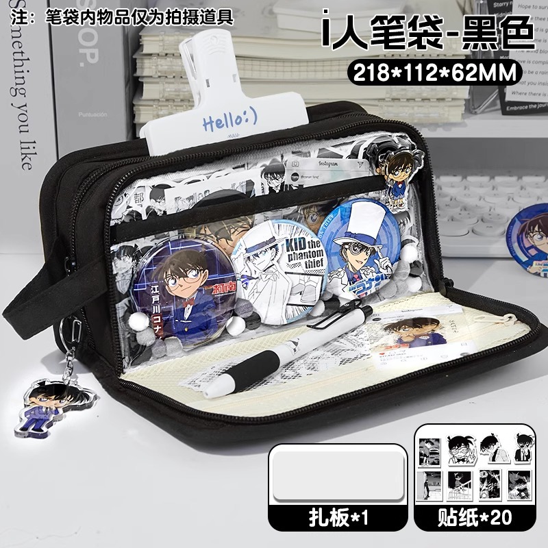 명탐정 코난 연필 가방 2차원 통증 가방 문구 상자 학생 고급스러운 대용량 간단한 투명 연필 가방