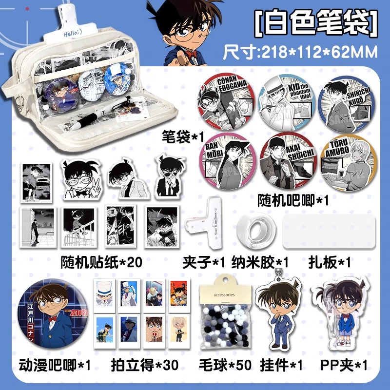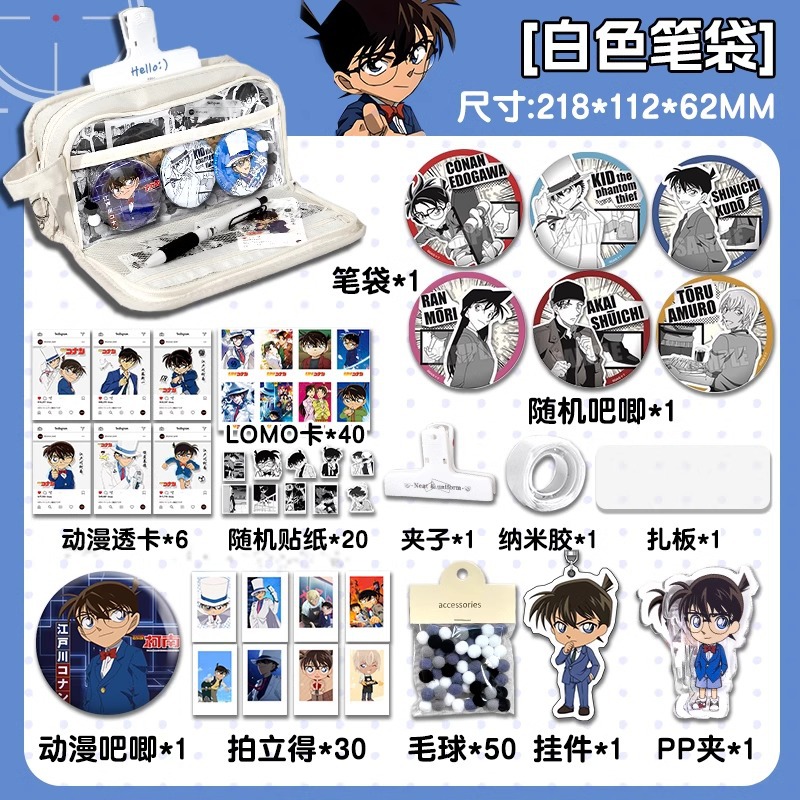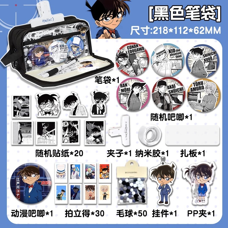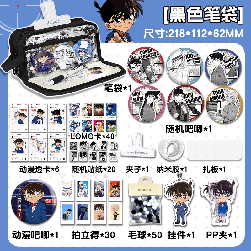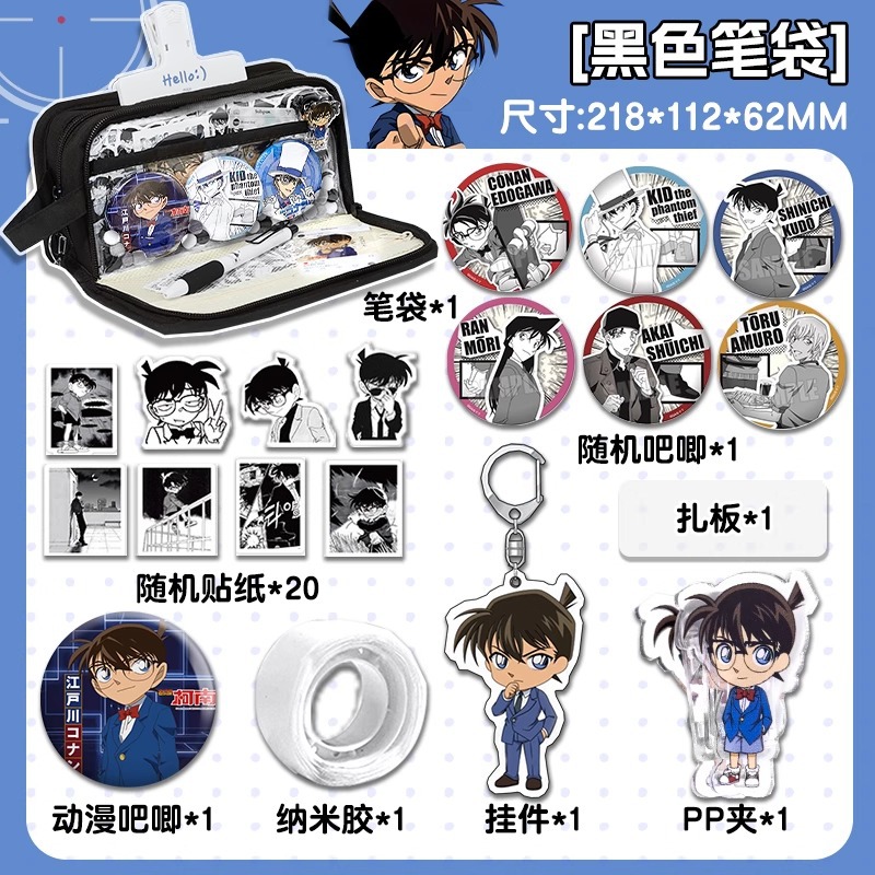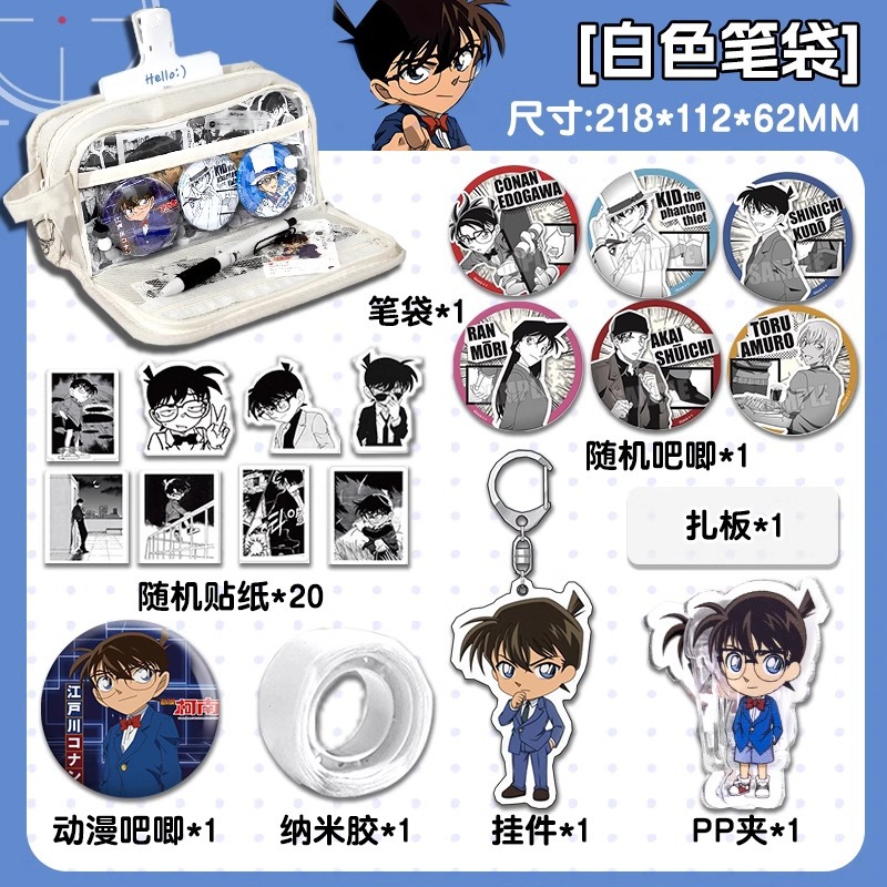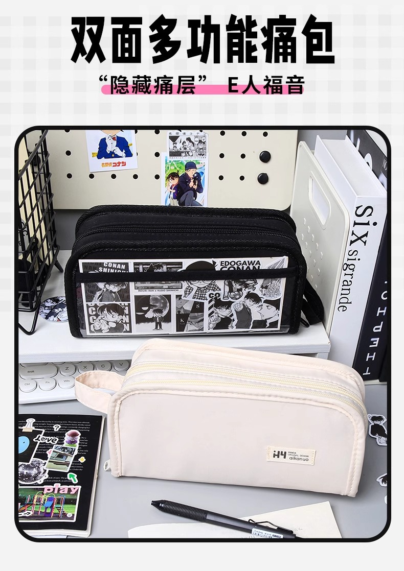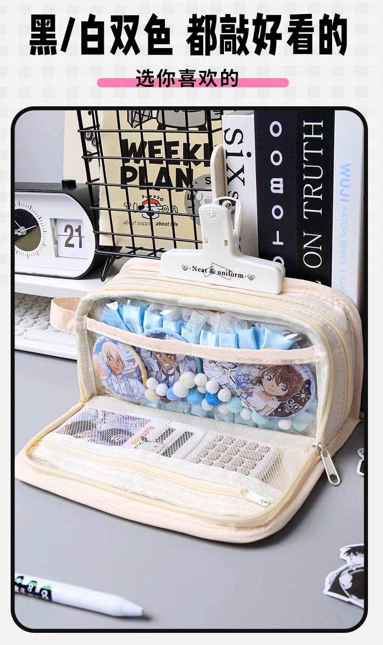 명탐정 코난 연필 가방 2차원 통증 가방 문구 상자 학생 고급스러운 대용량 간단한 투명 연필 가방