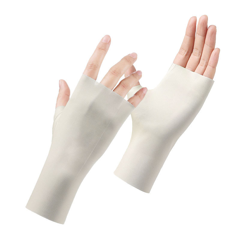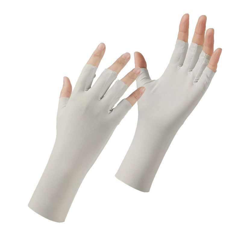 여름 여성용 아이스 실크 자외선 차단제 장갑, 반 손가락 자외선 차단, 시원하고 통기성이 뛰어나며 얇은 차 따기 및 매니큐어 자외선 차단 장갑스토어 가기
