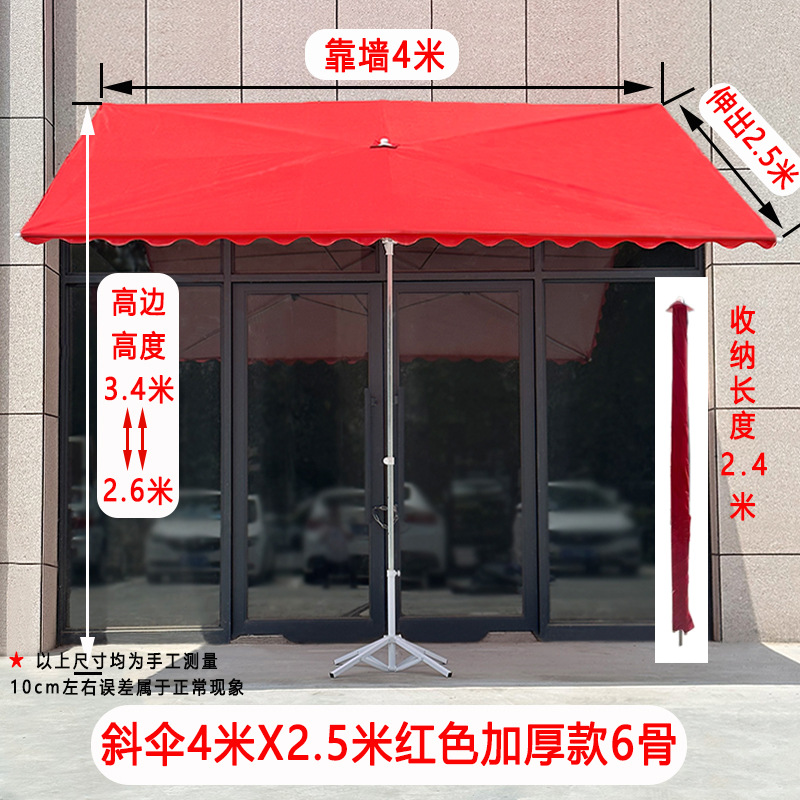 • [경사우산] 빨간색 4X2 두꺼워진 6개 갈비뼈 + 접이식 베이스(경사면이 좁음)₴