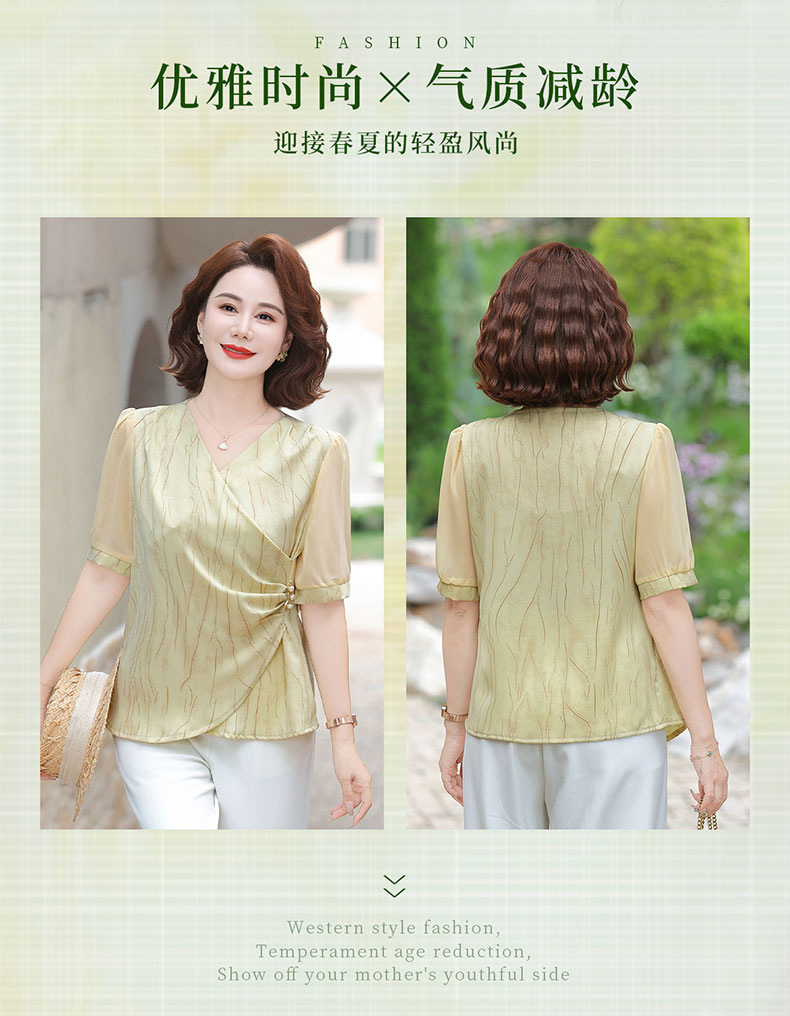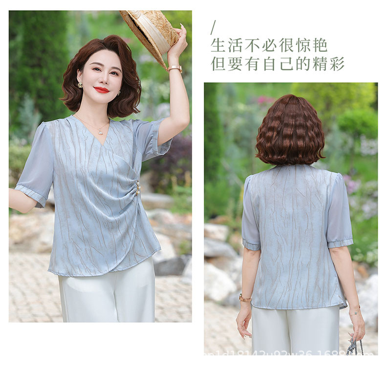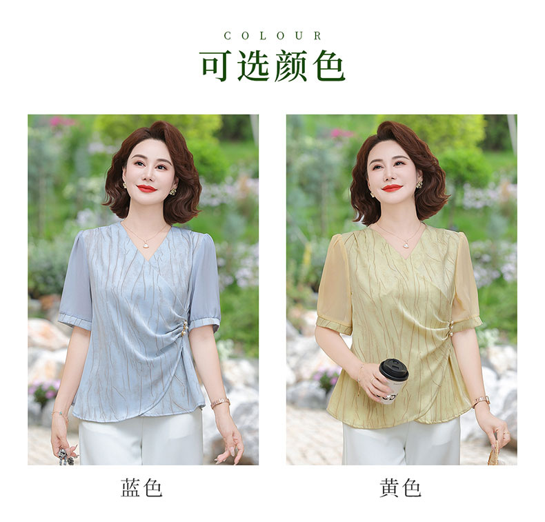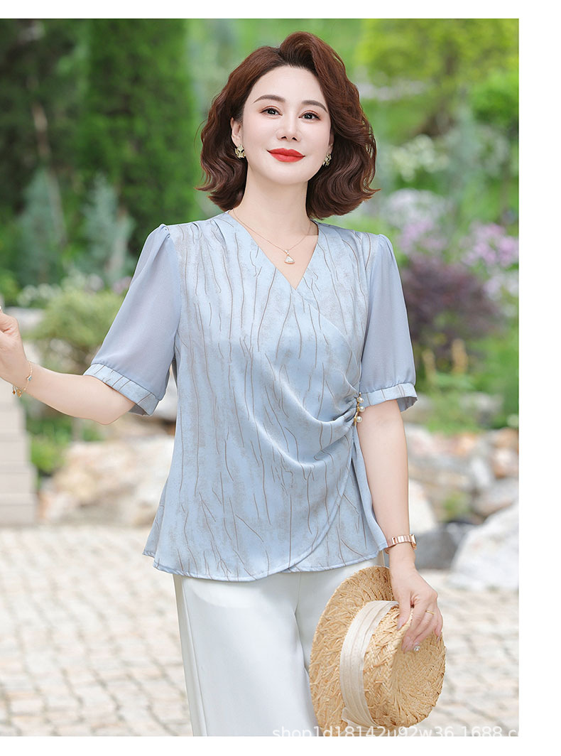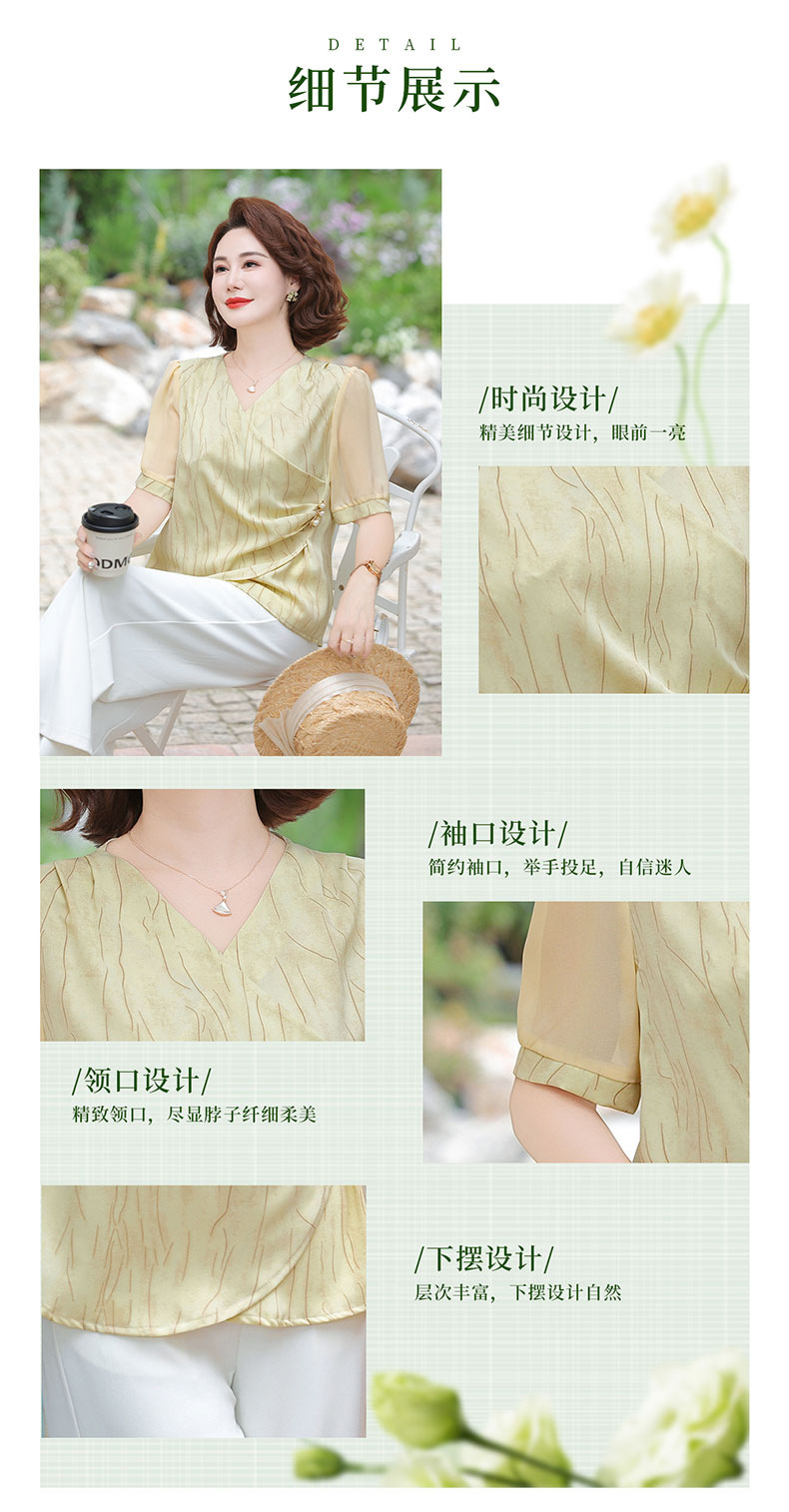 중년 어머니 여름 탑 반팔 쉬폰 셔츠 2025 새로운 패션 셔츠 중년 및 노인 여성 여름 셔츠스토어 가기