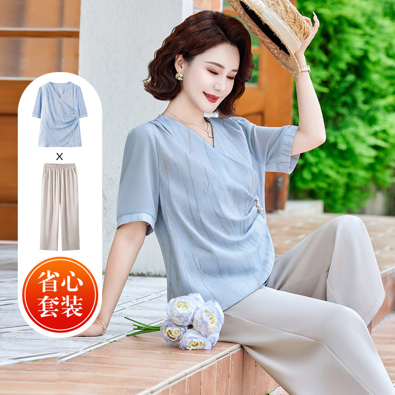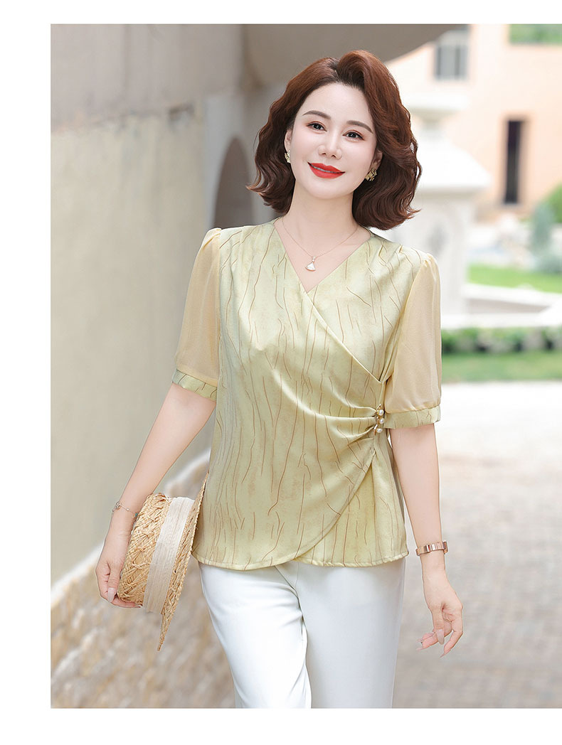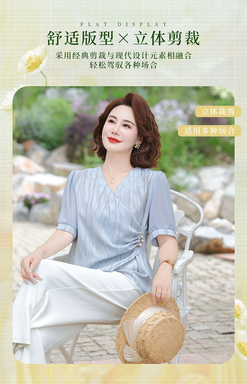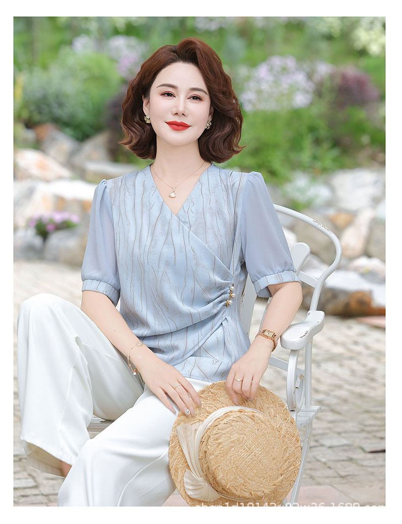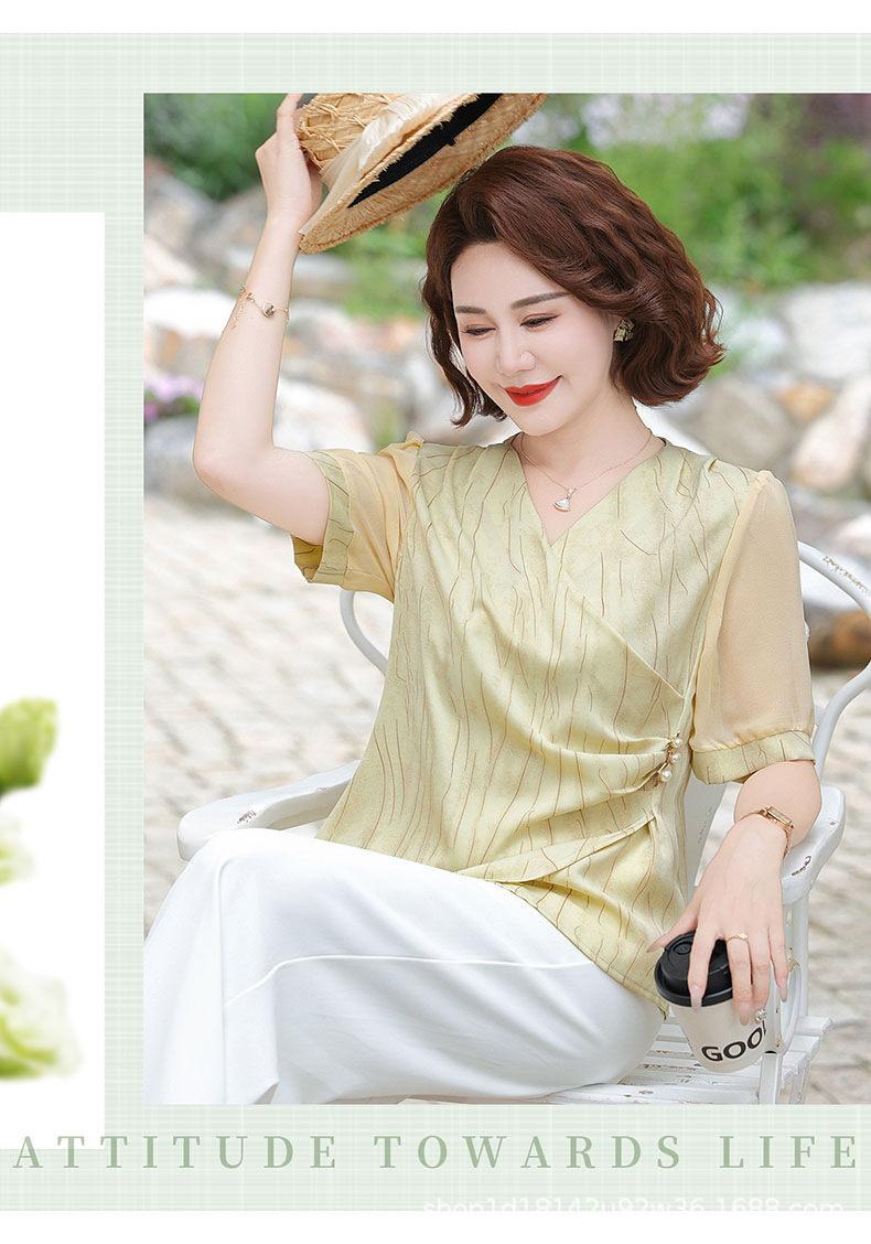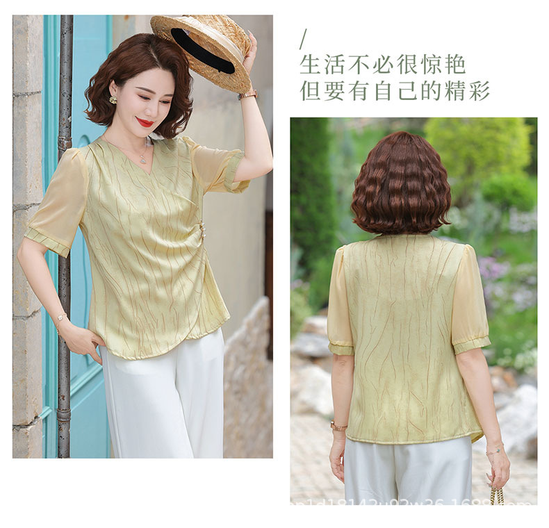 중년 어머니 여름 탑 반팔 쉬폰 셔츠 2025 새로운 패션 셔츠 중년 및 노인 여성 여름 셔츠스토어 가기