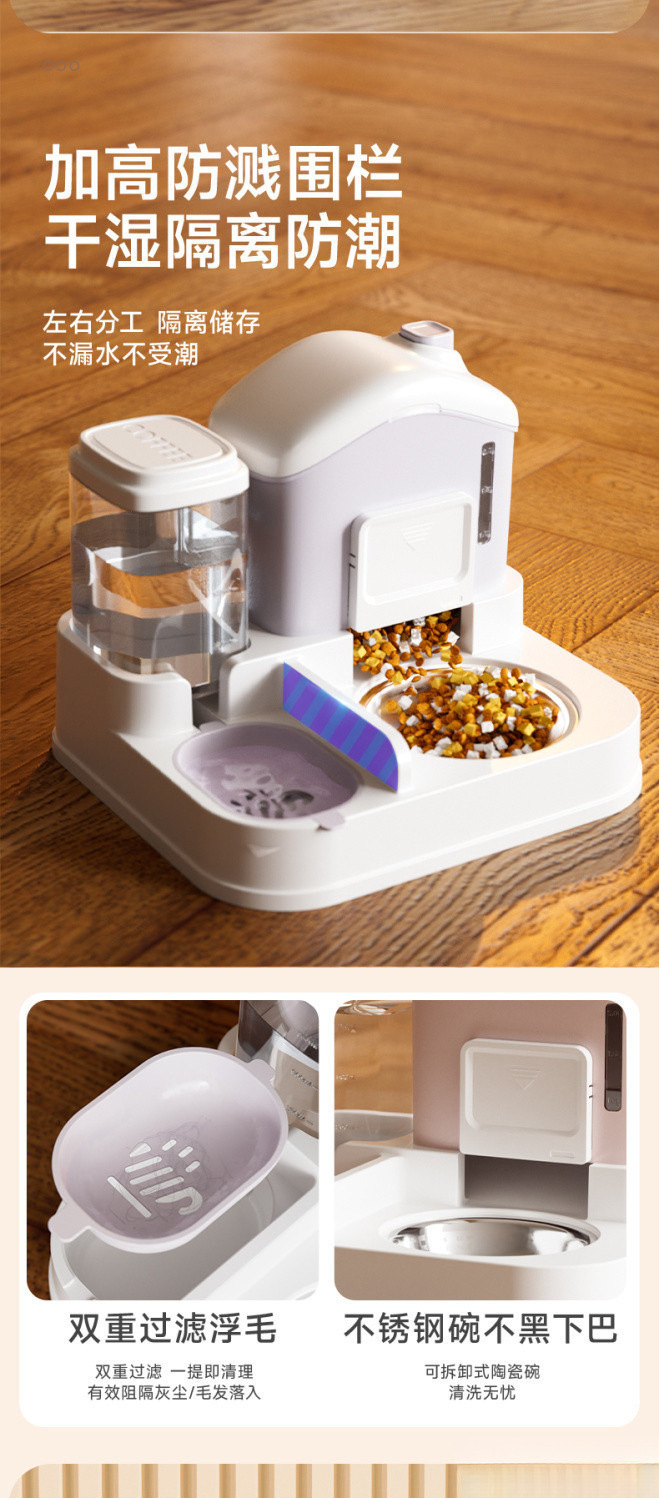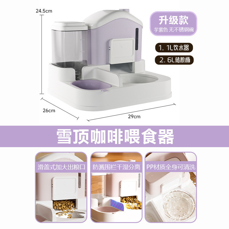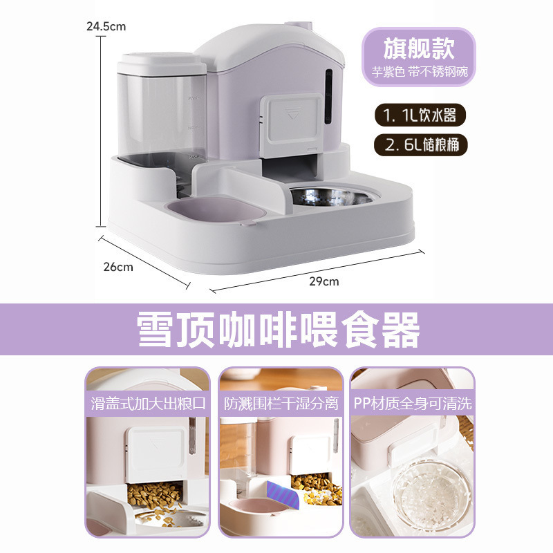 고양이 그릇, 고양이 사료 그릇, 스노우 하우스 자동 먹이 및 물통, 넘어짐 방지 애완 동물 고양이 및 강아지 밥 그릇, 더블 그릇스토어 가기