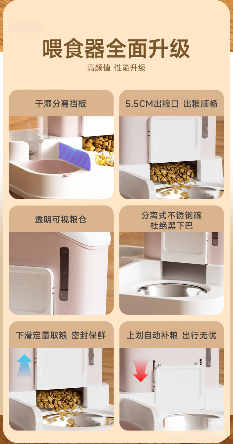 • 피치 핑크 + 스테인리스 그릇 [곡물 조절 가능, 청소 용이]