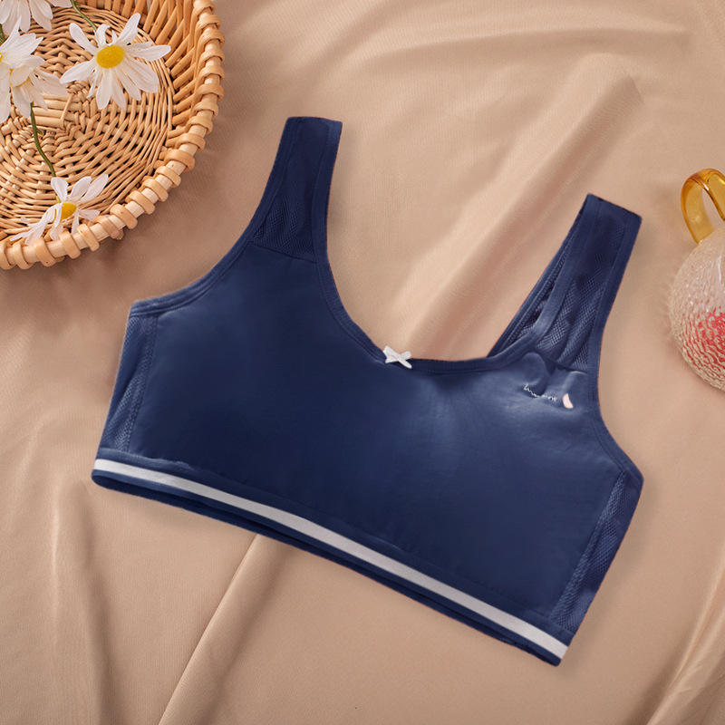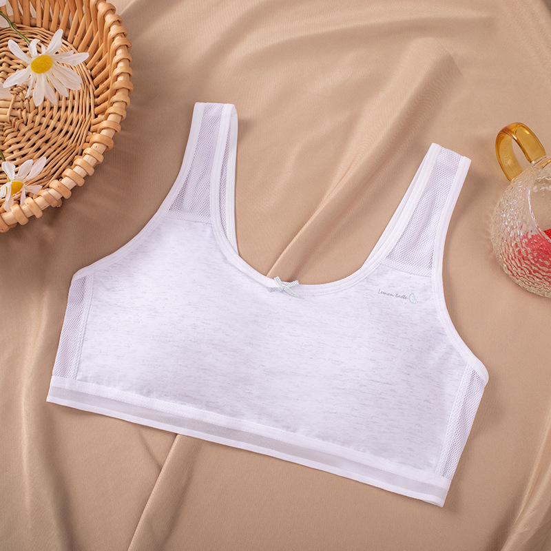 여름 소녀 속옷 스포츠 통기성 메쉬 고정 컵 중학생 및 고등학생 발달 기간 소녀 큰 어린이 조끼