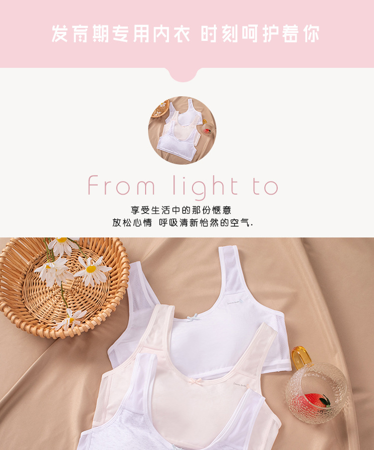 여름 소녀 속옷 스포츠 통기성 메쉬 고정 컵 중학생 및 고등학생 발달 기간 소녀 큰 어린이 조끼스토어 가기